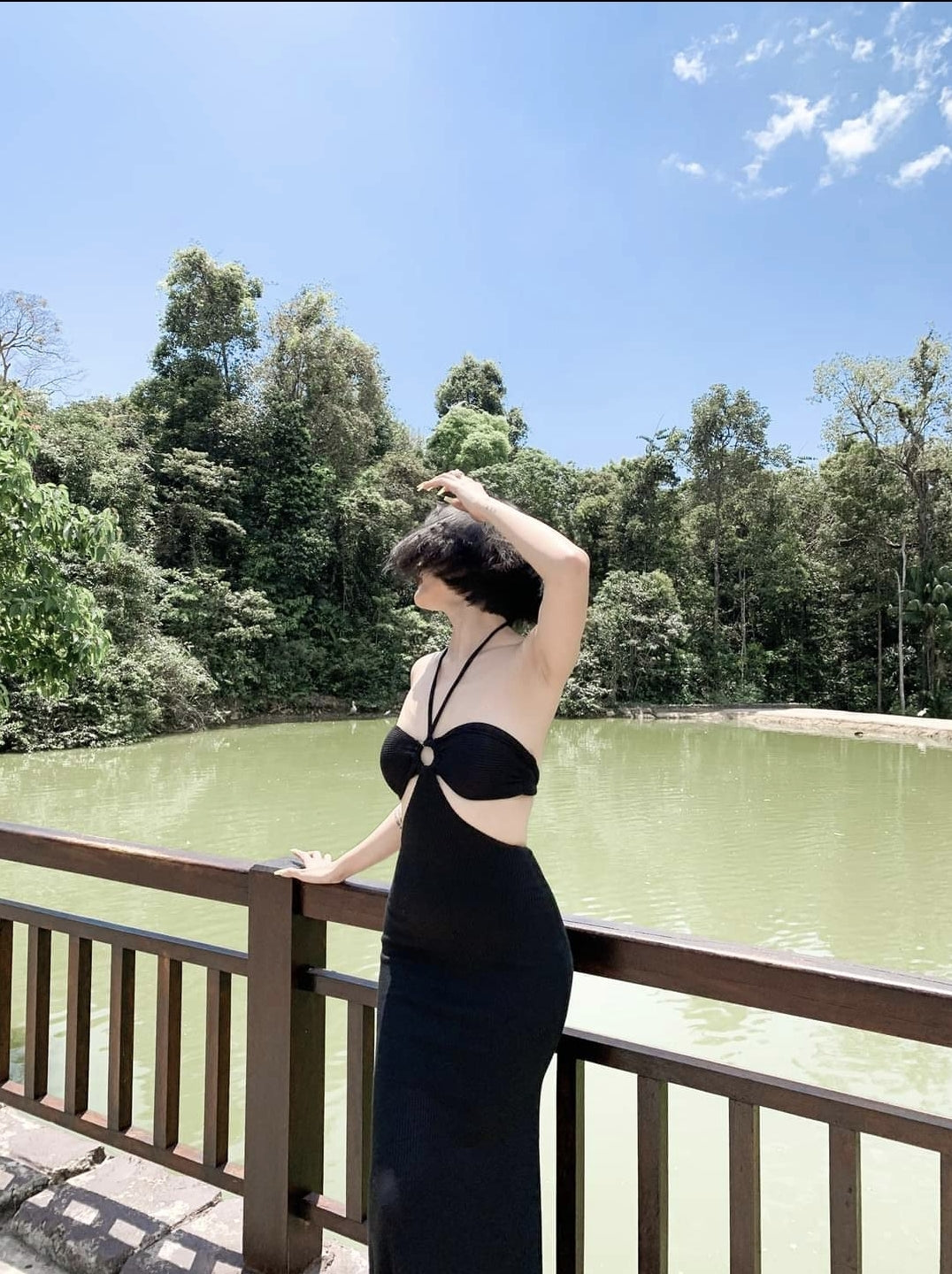 Cette robe en soie dos nu signée Sarah Luton est conçue pour une élégance audacieuse, parfaite pour les soirées ou les vacances. Confectionnée en soie luxueuse, elle présente un corsage bandeau orné d'un anneau central, des découpes flatteuses sur le devant et un dos nu noué au cou. Sa silhouette moulante se prolonge par un ourlet légèrement évasé, accentuant les courbes tout en offrant une élégance gracieuse. Idéale pour les fêtes d'été ou les vacances glamour, cette pièce allie sensualité et sophistication. Le savoir-faire signature de Sarah Luton garantit un soin minutieux des moindres détails pour un confort optimal et un style affirmé.