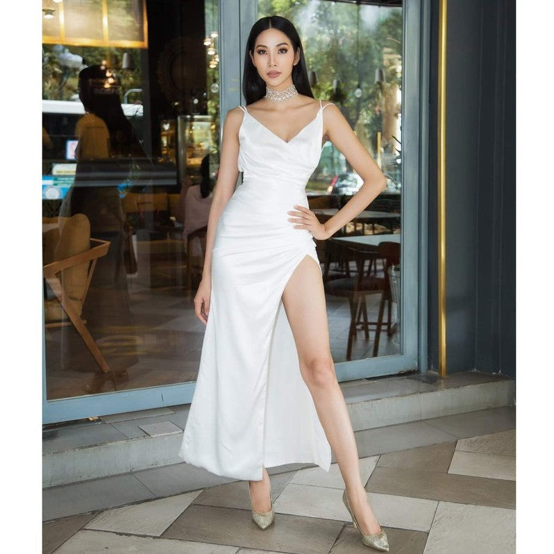 La robe en soie Sarah Luton incarne le glamour moderne. Confectionnée en soie coupée en biais pour un drapé fluide et galbant, elle fera tourner les têtes. Conçue pour faire tourner les têtes, elle présente un décolleté bénitier délicat, de fines bretelles et une fente spectaculaire jusqu'aux cuisses qui souligne son allure audacieuse et sophistiquée. Sa finition en soie brillante scintille sous la lumière, parfaite pour les soirées, les réceptions formelles ou les tapis rouges. Avec sa silhouette flatteuse et son savoir-faire luxueux, cette pièce Sarah Luton incarne une sensualité intemporelle et une élégance raffinée. Un choix exceptionnel pour celles qui recherchent élégance et impact.