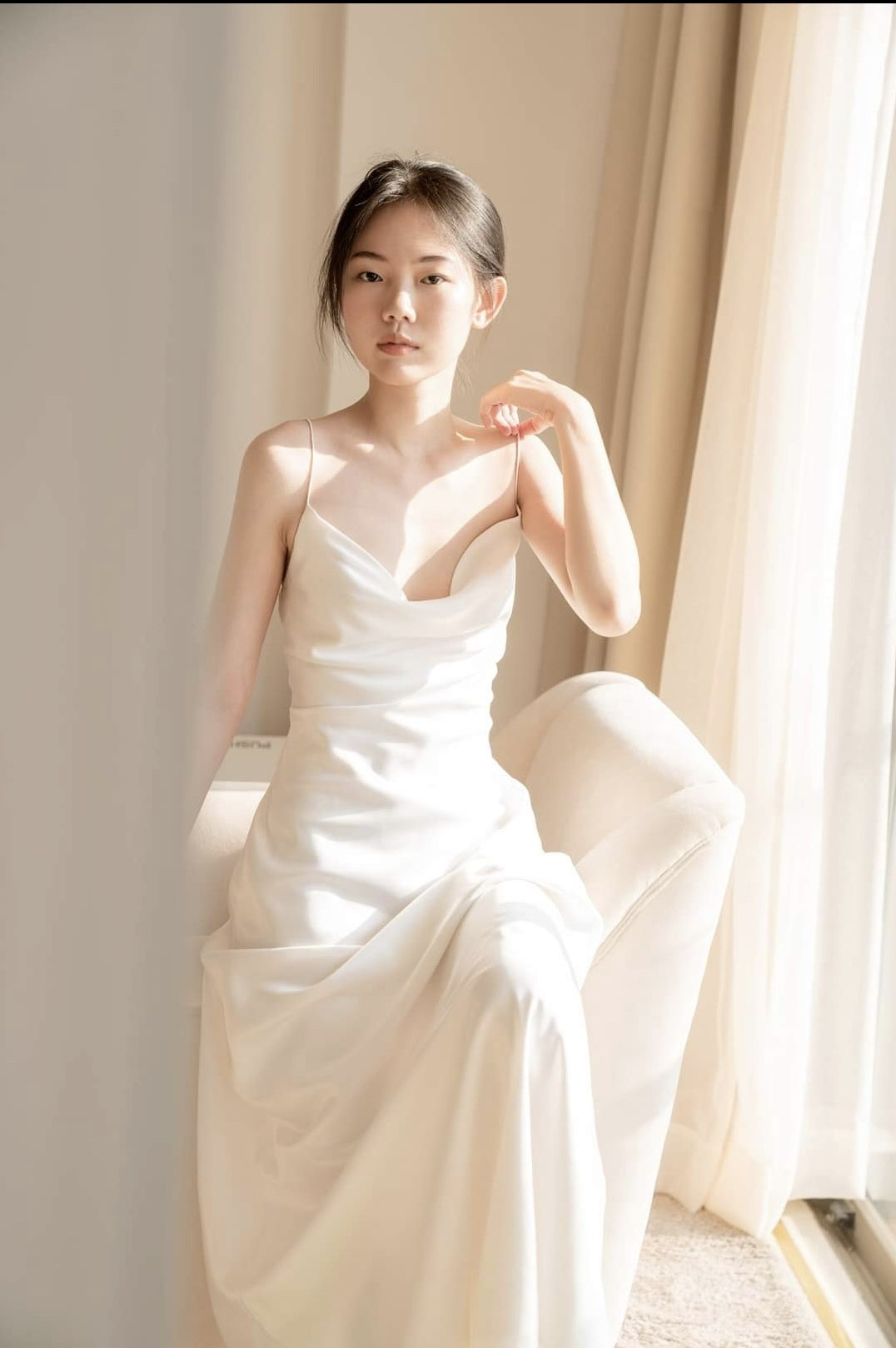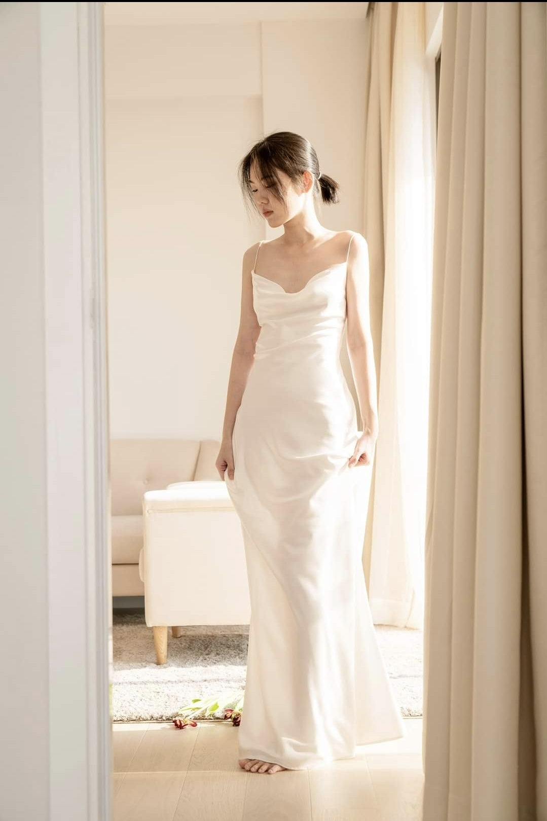 Cette élégante robe en soie coupée en biais signée Sarah Luton est flatteuse grâce à son drapé fluide et sa finition brillante. Confectionnée en soie de qualité supérieure, elle présente un décolleté bénitier légèrement drapé, de fines bretelles spaghetti et une silhouette gracieuse jusqu'au sol. Sa construction minimaliste met en valeur la brillance naturelle du tissu, la rendant idéale aussi bien pour les occasions formelles que pour une élégance raffinée au quotidien. Conçue pour sublimer la silhouette féminine, cette pièce intemporelle se marie parfaitement avec des accessoires discrets pour un look épuré et raffiné. Un incontournable de la garde-robe sophistiquée de la femme moderne.