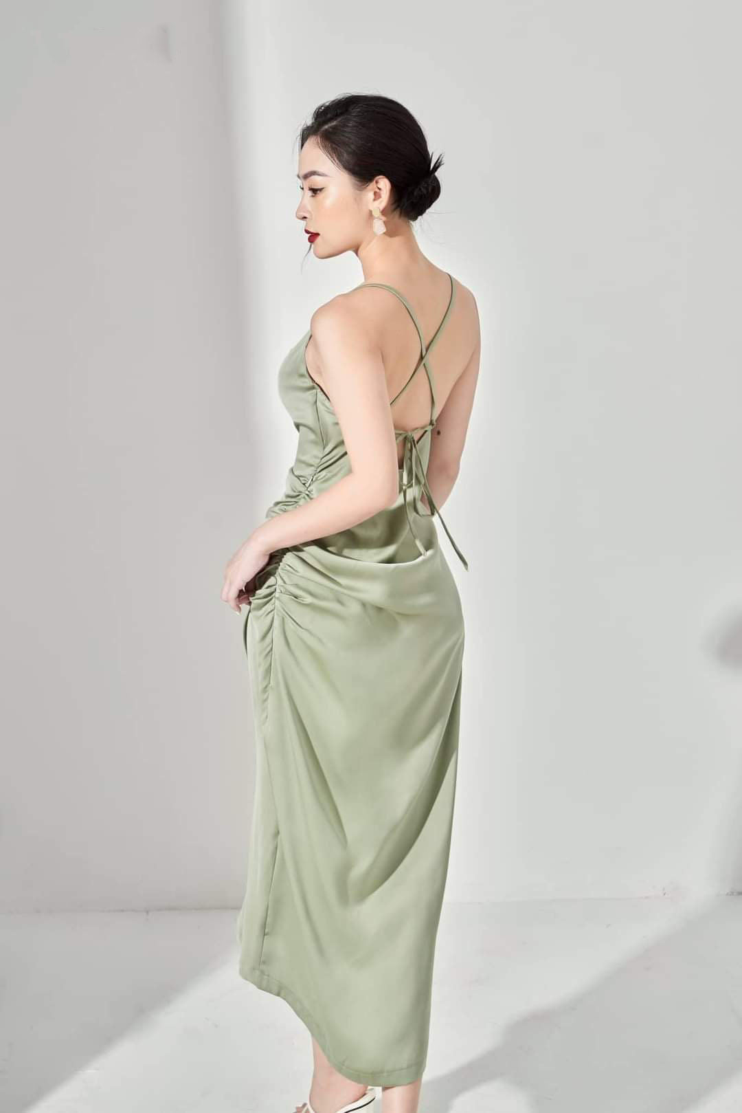 D'une élégance naturelle, cette robe midi en soie coupée en biais est un essentiel raffiné pour une tenue raffinée, de jour comme de nuit. Dotée d'un décolleté légèrement drapé et de bretelles délicates, sa silhouette épouse le corps avec grâce et fluidité. Les fronces froncées aux hanches et le lien croisé dans le dos ajoutent une touche féminine et une coupe ajustée. Idéale pour les soirées en plein air ou les événements sophistiqués, cette pièce incarne l'élégance intemporelle et le luxe discret. Un modèle signature de Sarah Luton, confectionné en soie haut de gamme pour un confort léger et une brillance exceptionnelle.