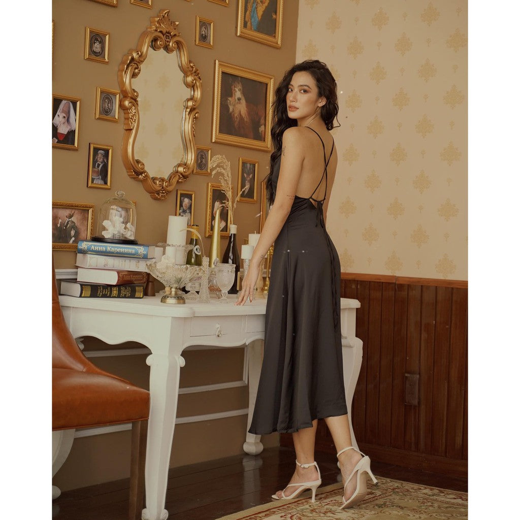 Cette robe midi en soie signée Sarah Luton redéfinit l'élégance moderne avec sa silhouette minimaliste et ses détails raffinés. Coupée en biais pour un drapé naturel et une liberté de mouvement optimale, elle présente de délicates bretelles spaghetti, un décolleté légèrement galbé et un superbe dos nu orné de liens croisés. Son tissu en soie fluide lui confère un fini lumineux et un tombé gracieux, idéal pour les soirées, les dîners intimes ou les soirées d'été. Portez-la avec des talons et des bijoux minimalistes pour une allure naturellement raffinée.