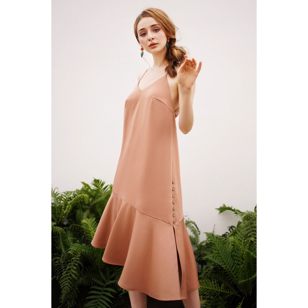 Cette élégante robe en soie signée Sarah Luton présente une silhouette minimaliste et une sophistication extrême. Dotée d'une coupe en biais flatteuse, elle épouse parfaitement le corps, sublimée par sa confection en soie fluide. Son ourlet asymétrique lui confère une touche moderne, tandis que de délicats boutons latéraux créent un subtil point focal et subliment le modèle. Avec ses fines bretelles et son décolleté en V fluide, cette pièce polyvalente se porte aussi bien en journée qu'en soirée. Le savoir-faire signature de Sarah Luton garantit confort et élégance en toute occasion.