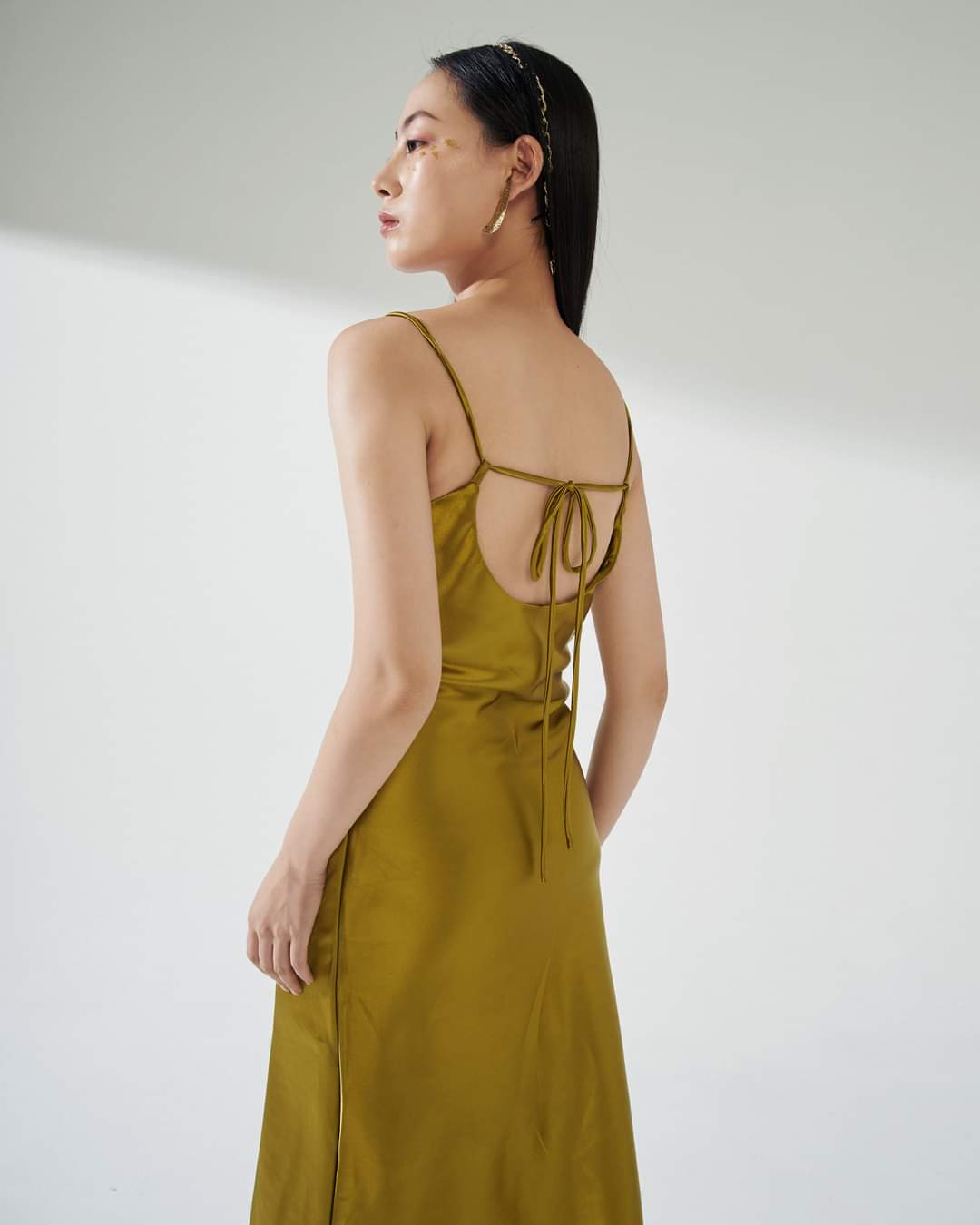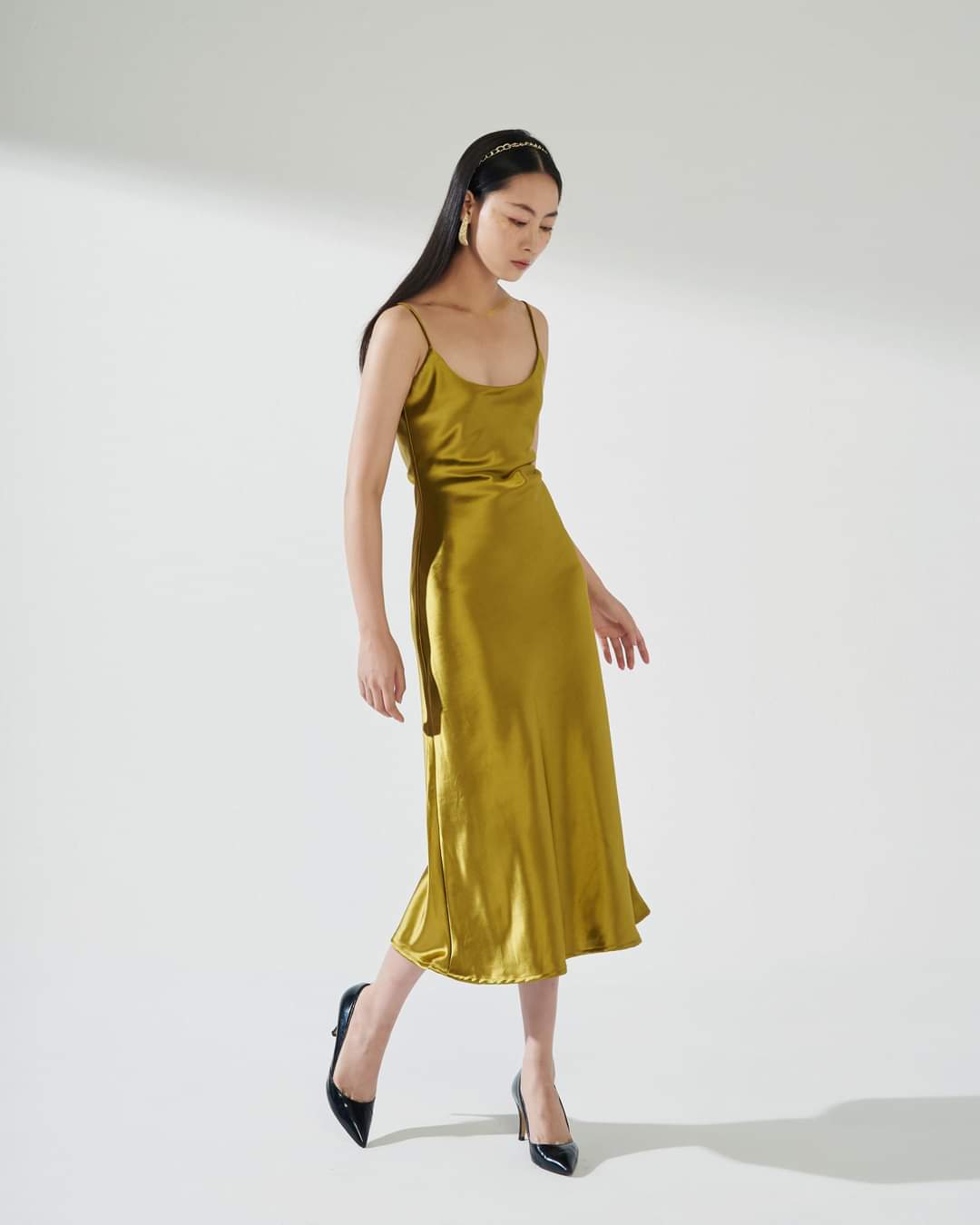 Cette robe en soie coupée en biais signée Sarah Luton incarne l'élégance moderne. Confectionnée en soie de qualité supérieure au doux lustre, elle présente une encolure dégagée flatteuse, de fines bretelles et un dos nu rehaussé d'un lien délicat pour une coupe ajustée et une allure gracieuse. Sa coupe mi-longue en biais offre un drapé sublimé et une fluidité de mouvement, idéale pour une allure sophistiquée en journée comme en soirée. Pièce minimaliste au raffinement remarquable, elle est conçue pour sublimer votre garde-robe d'un charme intemporel. Portée avec des talons ou des chaussures plates, cette robe en soie Sarah Luton vous assure une aisance impeccable à chaque pas.
