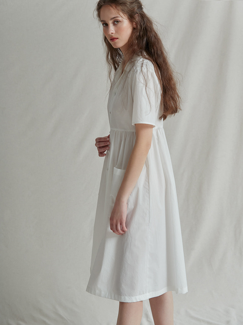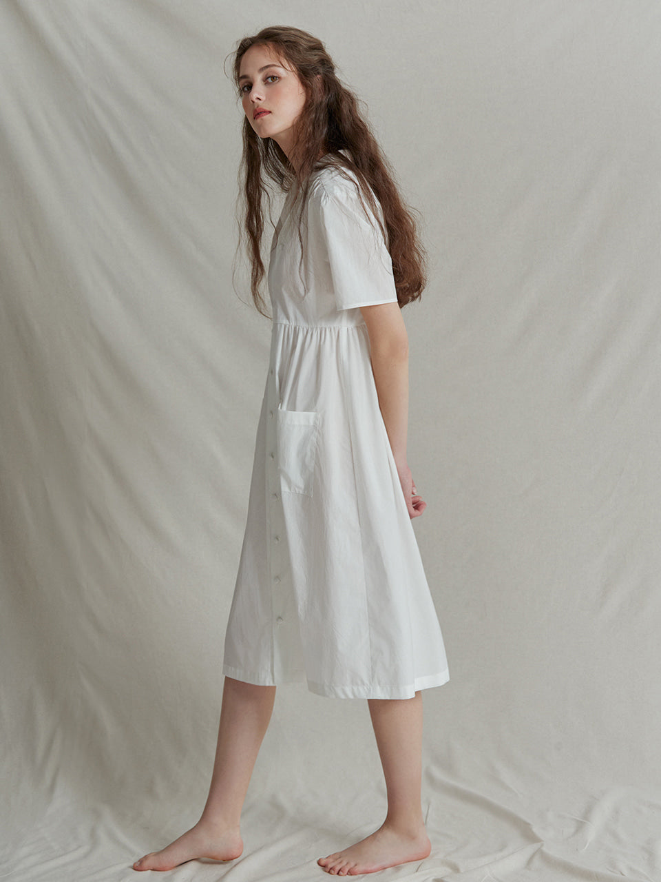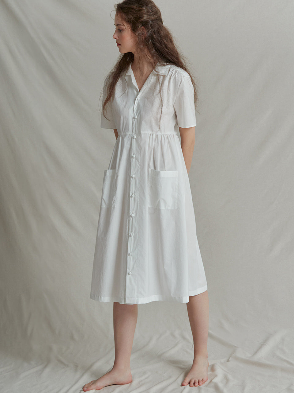 La robe en lin Sarah Luton est un basique fluide et structuré, conçu pour une élégance naturelle. Confectionnée en lin léger, elle présente une fermeture boutonnée sur le devant, un col flatteur et une taille légèrement froncée qui se prolonge en une jupe évasée mi-longue. Ses manches courtes et ses grandes poches plaquées lui confèrent une touche pratique et raffinée, idéale aussi bien en journée qu'avec un style décontracté raffiné.