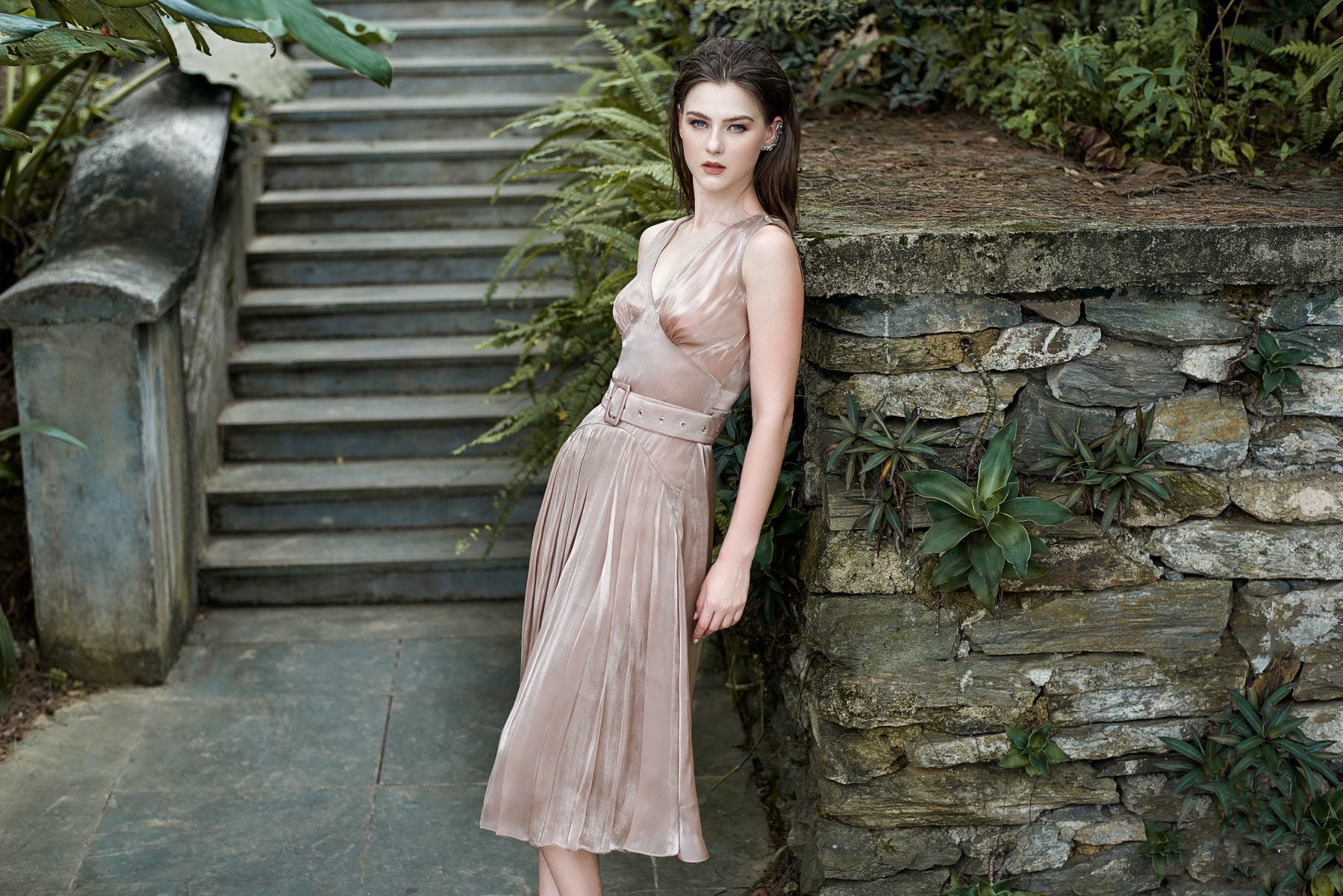 Offrez-vous le luxe avec notre exquise robe midi plissée à col V Celeste. Son design plissé et son décolleté en V ajoutent une touche de sophistication, tandis que sa longueur midi crée une silhouette intemporelle. Sublimez votre style et faites sensation à chaque événement avec cette robe exclusive.