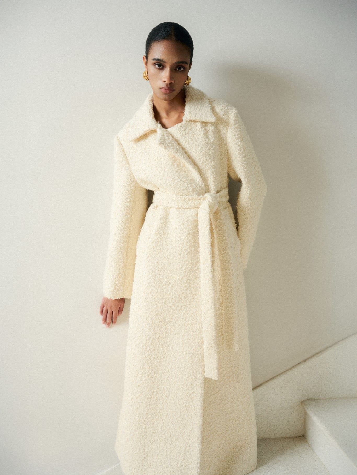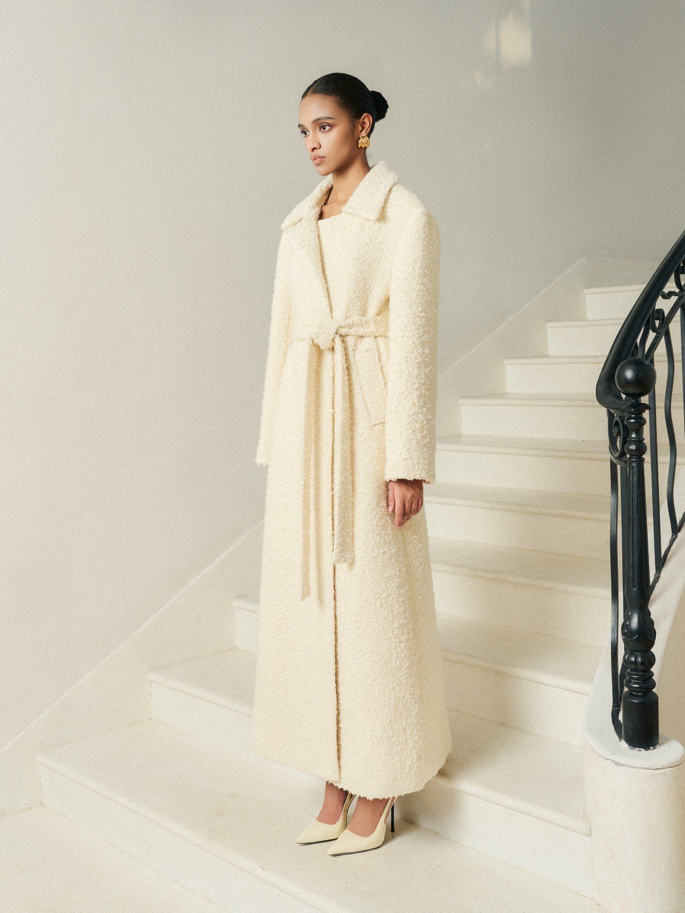 Le manteau long ceinturé Laura Ren offre une version luxueuse et raffinée des tenues d'hiver. Long, ce manteau à la texture bouclée présente un large revers cranté, un devant épuré et un lien à la taille ton sur ton qui cintre la silhouette avec aisance. Entièrement doublé pour plus de confort et de structure, il se porte avec élégance sur un pantalon tailleur ou une robe fluide. Avec son toucher moelleux et sa forme intemporelle, ce manteau Laura Ren est la pièce d'extérieur idéale pour la saison fraîche : raffiné, chaud et infiniment polyvalent.