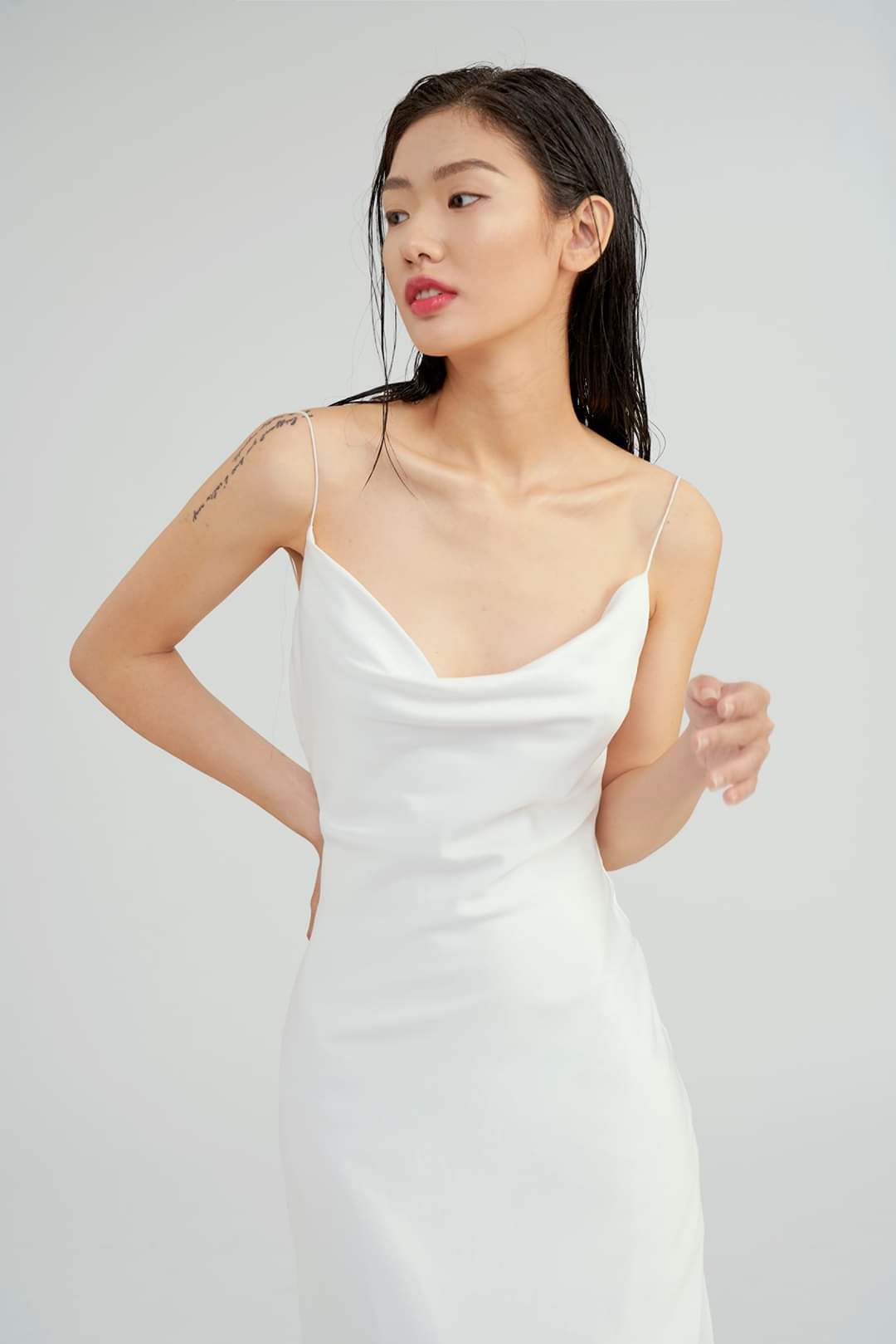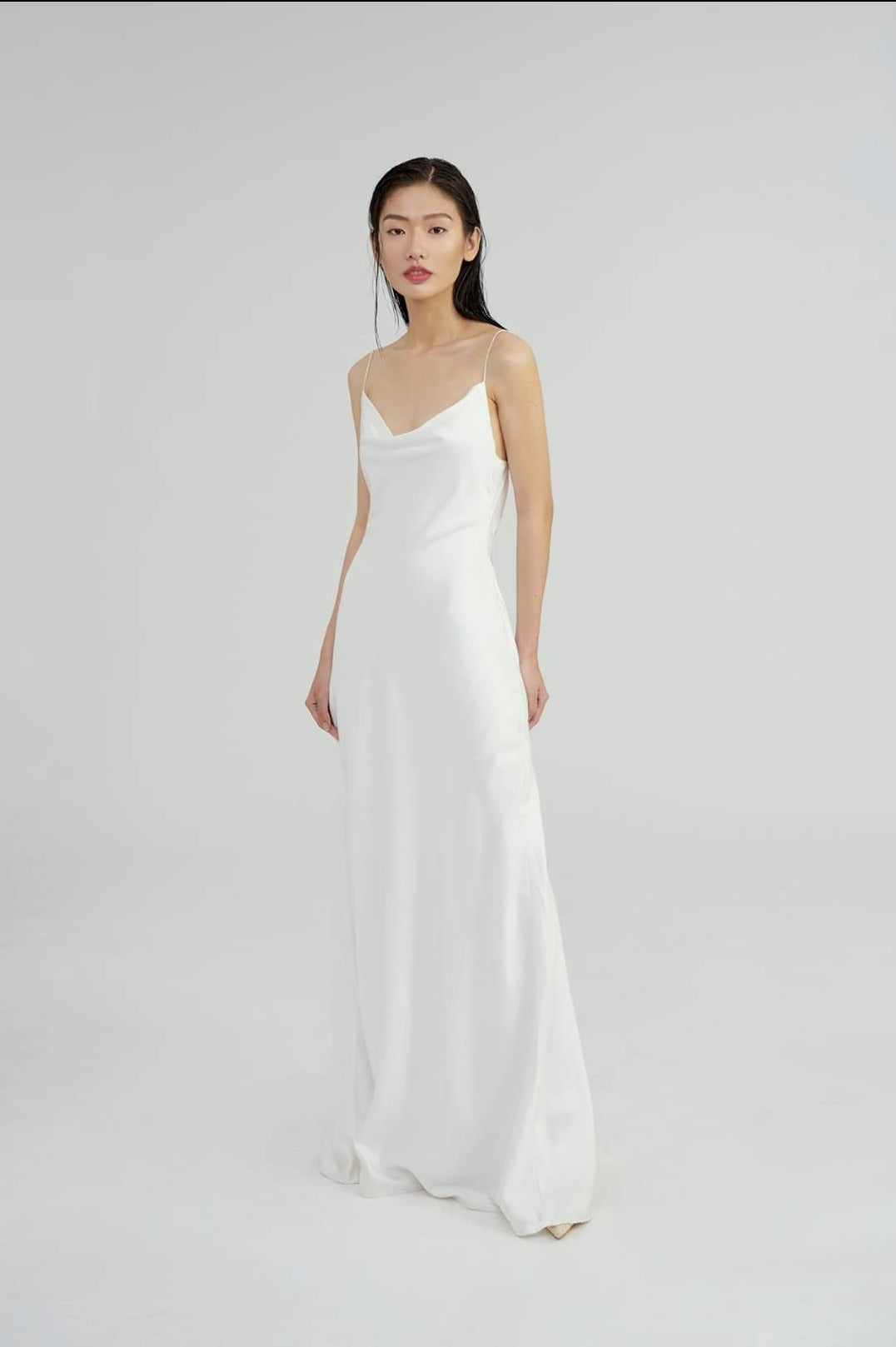 Conçue avec une sophistication naturelle, cette robe longue en soie présente un décolleté légèrement drapé et de fines bretelles spaghetti pour une silhouette épurée et minimaliste. Confectionnée en soie fine, elle épouse gracieusement chaque pas, créant une allure fluide et raffinée. Idéale aussi bien pour les occasions formelles que pour les soirées raffinées, cette pièce apporte une touche de modernité à une élégance intemporelle. L'éclat naturel de la soie rehausse son toucher luxueux, ce qui en fait un incontournable de toute garde-robe. Découvrez la beauté discrète de cette pièce signature Sarah Luton qui incarne la féminité gracieuse par sa simplicité.