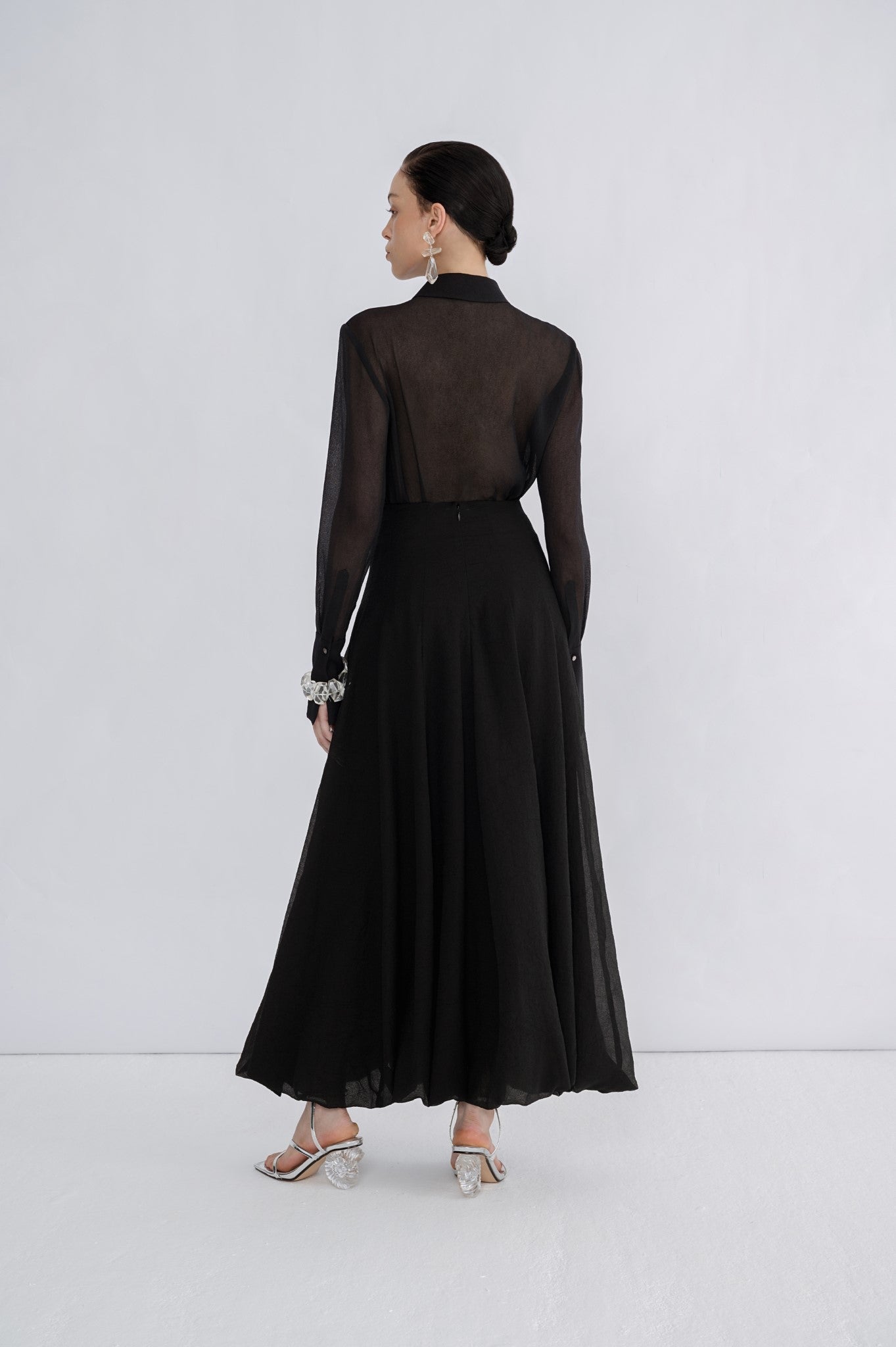 La jupe évasée en lin Laura Ren est l'expression raffinée d'une coupe fluide et d'une structure souple. Conçue pour une taille haute, elle se prolonge en une silhouette volumineuse et longue qui bouge gracieusement à chaque pas. Une finition semi-transparente et des plis discrets lui confèrent légèreté et sophistication, parfaite pour les grandes occasions comme pour un look élégant au quotidien. Conçue pour s'associer parfaitement à des chemisiers structurés ou des hauts transparents, cette jupe offre un charme intemporel ancré dans une élégance naturelle. Laissez l'esthétique Laura Ren sublimer votre garde-robe moderne.
