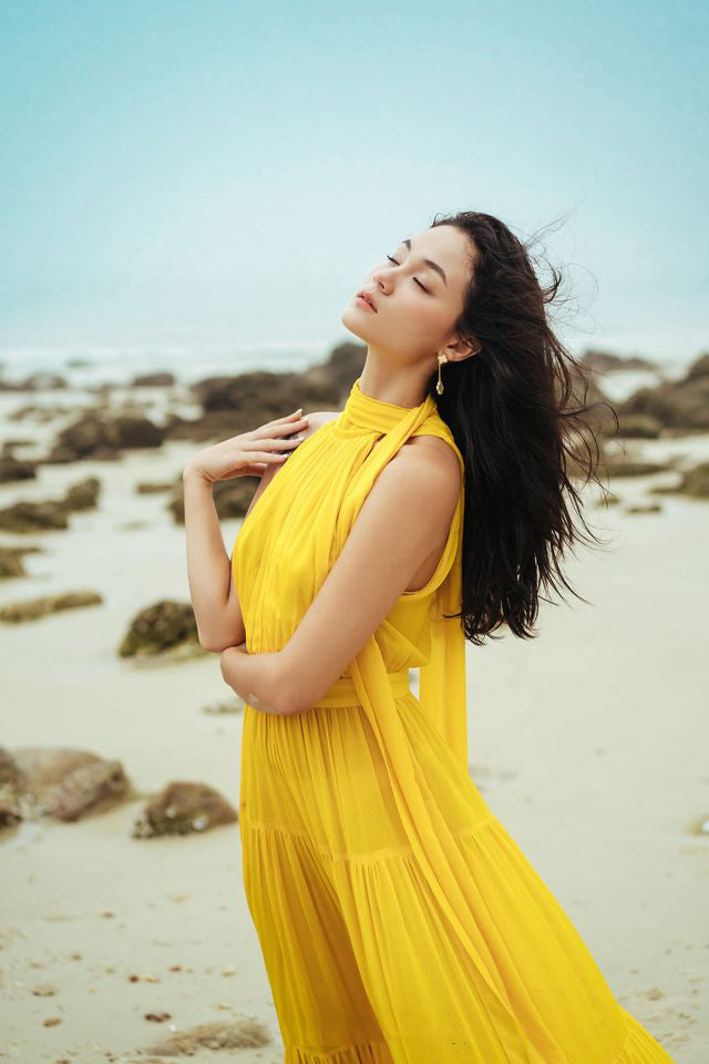 Sublimez votre garde-robe estivale avec cette sublime robe longue en mousseline d'organza signée Sarah Luton. Conçue pour une élégance naturelle, cette silhouette longue présente un corsage sans manches aux fronces délicates, une taille cintrée pour une silhouette féminine et une jupe à volants qui s'offre avec grâce à chaque pas. Confectionnée en mousseline d'organza légère, elle offre confort et respirabilité, idéale pour les vacances à la plage, les garden-parties ou les soirées au coucher du soleil. Sa texture douce et son drapé gracieux incarnent une sophistication intemporelle tout en sublimant le mouvement et le charme. Découvrez le raffinement signature de Sarah Luton dans chaque détail de cette création captivante.