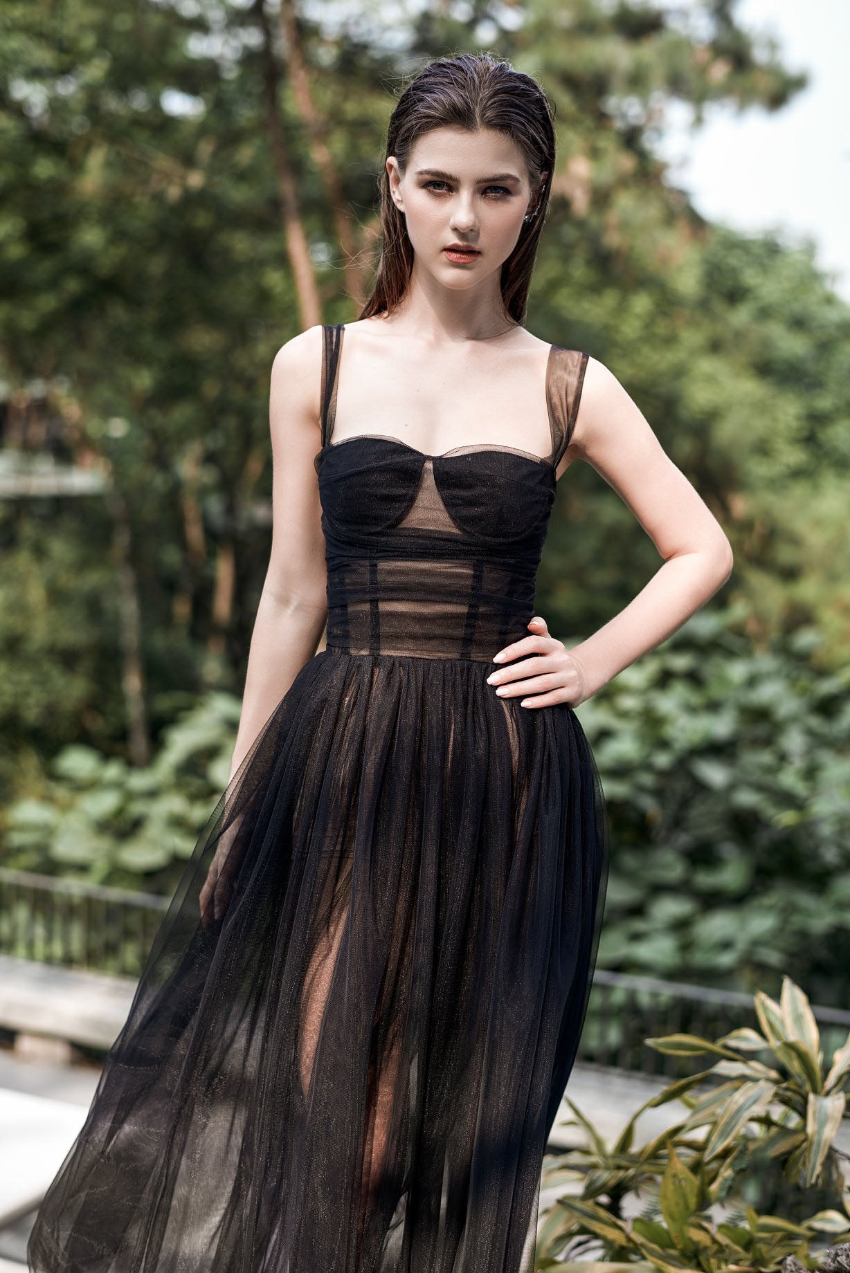 Laissez-vous séduire par l'élégance luxueuse de la robe bustier longue en tulle Laura. Cette pièce sublime, avec son bustier magnifiquement travaillé et sa délicate superposition de tulle, crée un look sophistiqué et exclusif. Parfaite pour toutes les occasions spéciales, cette robe est un incontournable pour celles qui apprécient les belles choses de la vie.