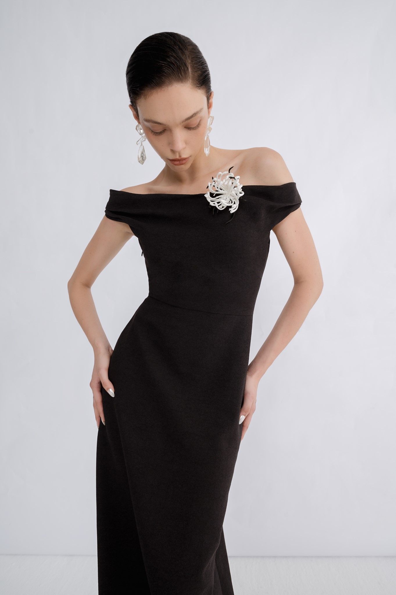 Laura Ren présente une silhouette intemporelle avec cette robe en laine mélangée à épaules dénudées, conçue pour incarner une élégance raffinée et une structure gracieuse. Dotée d'un corsage ajusté et d'un ourlet légèrement évasé, elle présente un décolleté drapé et rabattu qui met en valeur le décolleté avec une sophistication discrète. Une fente latérale subtile ajoute du mouvement à la jupe longue, tandis que le mélange de laine structuré lui assure une tenue élégante tout au long de la tenue. Idéale pour les soirées habillées ou les occasions spéciales, cette création met en valeur l'équilibre signature de Laura Ren entre féminité moderne et coupe architecturale.