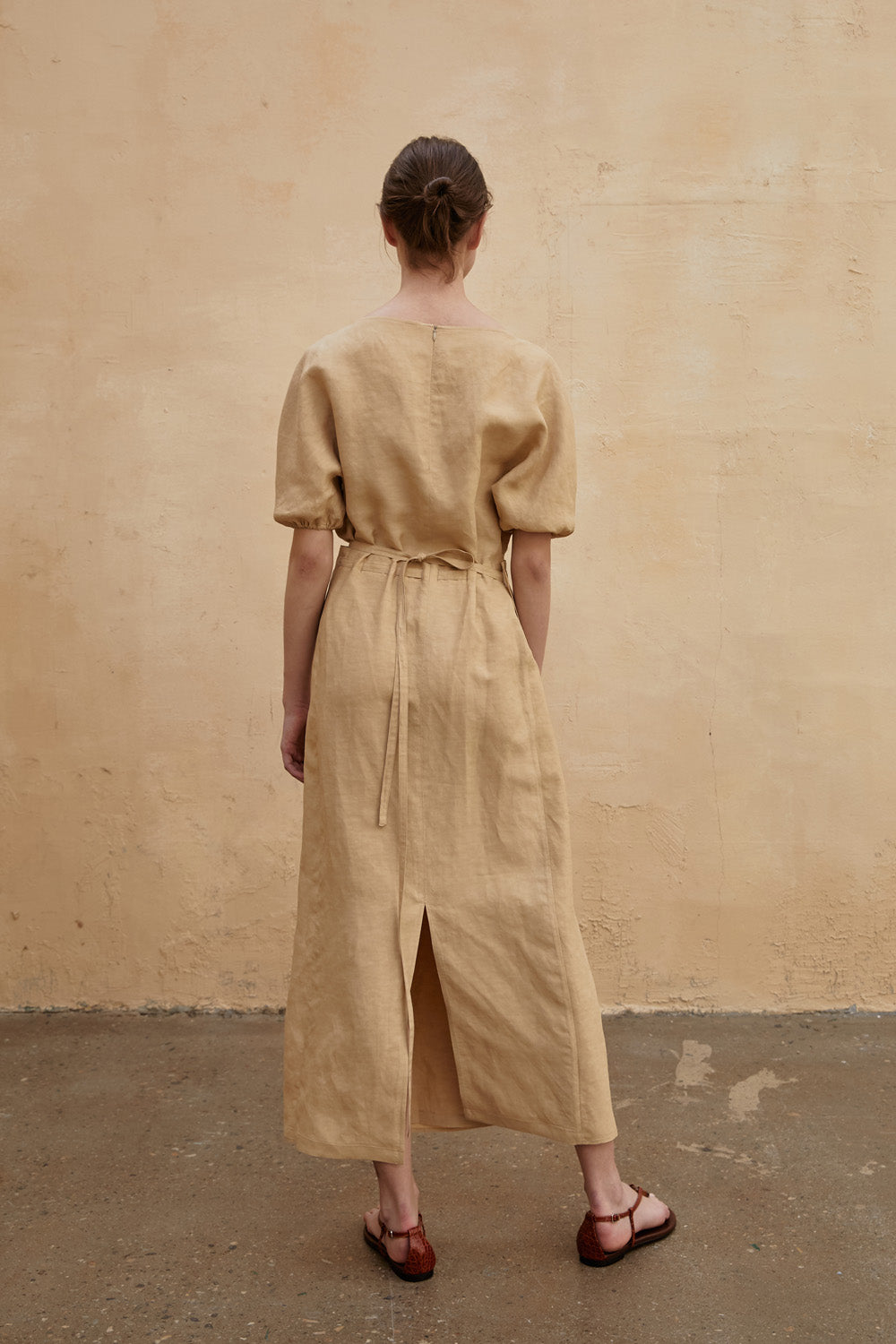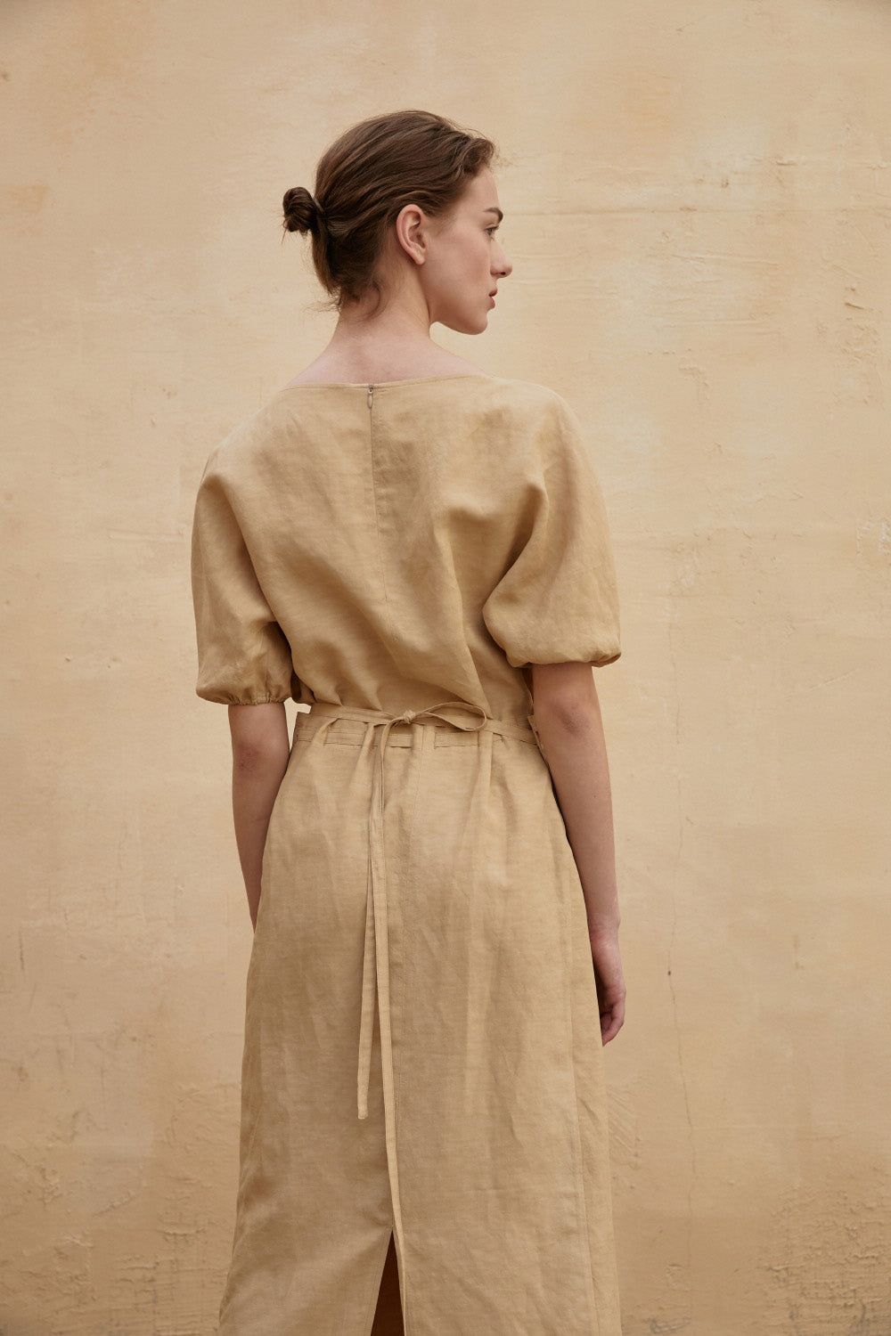 Confectionnée en lin respirant de haute qualité, cette robe midi signée Sarah Luton incarne l'essence même de la sophistication naturelle. Dotée d'une encolure bateau, de manches bouffantes subtiles et d'une coupe droite, elle flatte la silhouette tout en offrant un confort décontracté. La fente latérale apporte une touche d'aisance et de mouvement, la rendant parfaite pour une tenue de jour raffinée comme pour une soirée discrète. Suffisamment polyvalente pour être portée avec des sandales en cuir ou des talons minimalistes, cette pièce est un incontournable des garde-robes estivales. Une expression classique du minimalisme sur mesure signée Sarah Luton.