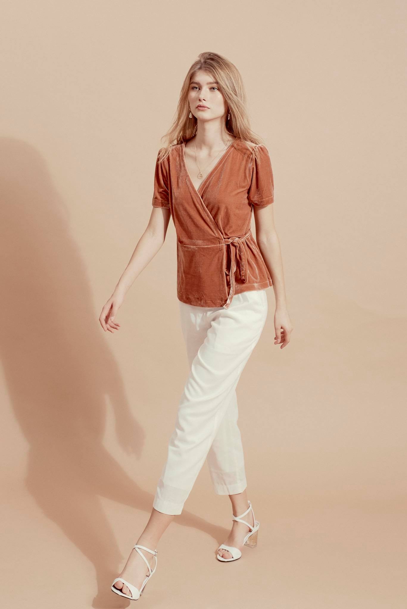 Sublimez votre garde-robe quotidienne avec ce chemisier portefeuille en velours doux de Laura Ren. Doté d'un décolleté en V profond et de manches courtes féminines, ce chemisier se noue parfaitement à la taille pour sublimer votre silhouette grâce à une coupe flatteuse et ajustable. Son tissu en velours lui confère une texture riche et un éclat subtil, idéal pour passer d'une tenue décontractée à une tenue de soirée raffinée. Associé à un pantalon tailleur ou à une jupe élégante, ce modèle polyvalent offre une sophistication intemporelle. Adoptez ce chemisier en velours Laura Ren pour un style chic et naturel.