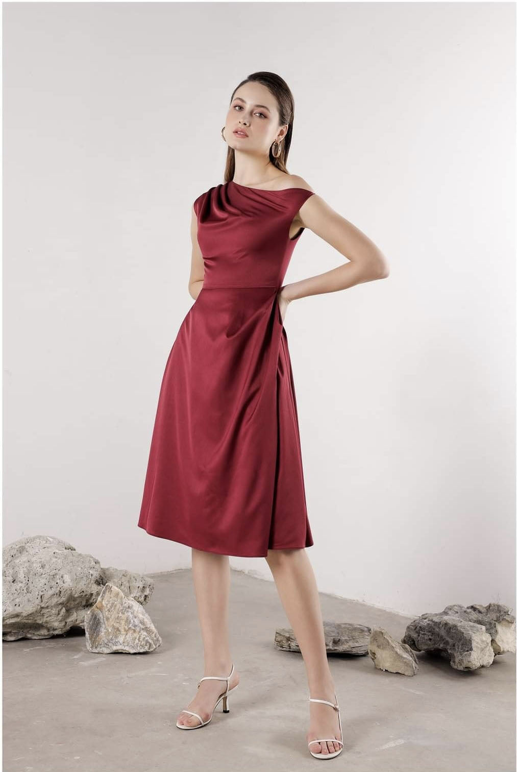 Confectionnée en soie somptueuse, cette robe midi asymétrique signée Sarah Luton revisite avec modernité les tenues de soirée classiques. Son décolleté asymétrique dessine une silhouette sculpturale à la fois audacieuse et raffinée, tandis que sa taille cintrée flatte la silhouette et sublime le drapé structuré de la robe. Avec son ourlet mi-long gracieux, cette pièce allie élégance et facilité de port, parfaite pour les cocktails, les dîners officiels ou les événements spéciaux. La soie fluide épouse chaque pas avec aisance, apportant une sophistication intemporelle à votre garde-robe.
