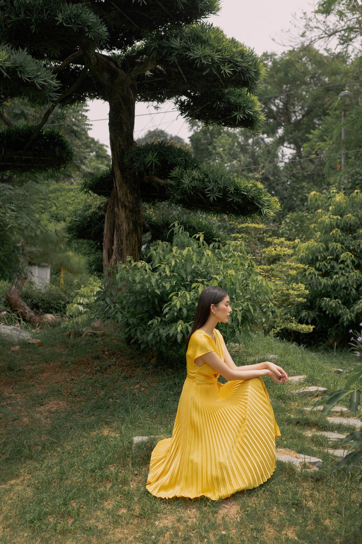 Cette robe midi en soie signée Sarah Luton allie élégance sculpturale et féminité gracieuse. Dotée d'un corsage légèrement torsadé et de délicates mancherons, elle souligne la taille et dessine une silhouette flatteuse. La jupe finement plissée apporte texture et mouvement, s'adaptant parfaitement à chaque pas. Le tissu en soie sublime la silhouette par son drapé fluide et sa brillance subtile. Idéale pour les mariages, les garden-parties ou les occasions raffinées, cette robe midi allie sophistication intemporelle et confort.