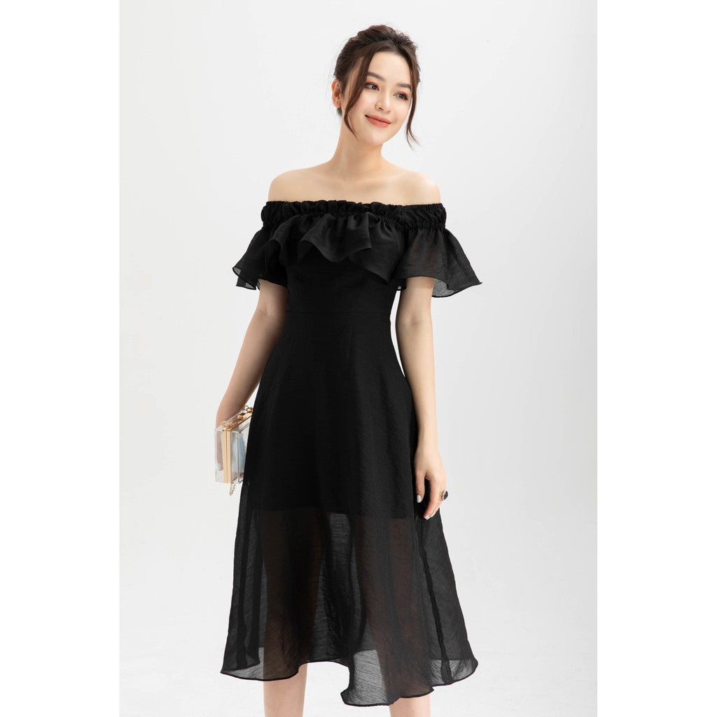 Cette élégante robe à épaules dénudées signée Sarah Luton est confectionnée en organza de soie léger, conçu pour créer un mouvement gracieux et une allure romantique. Son encolure élastiquée est ornée d'un volant volumineux, encadrant parfaitement les épaules et la clavicule. Ajustée au niveau du corsage et s'évasant délicatement en une jupe midi transparente, la silhouette allie structure et fluidité. Que ce soit pour une soirée, un cocktail ou une réception chic, cette robe en soie Sarah Luton incarne une féminité intemporelle avec une touche contemporaine.