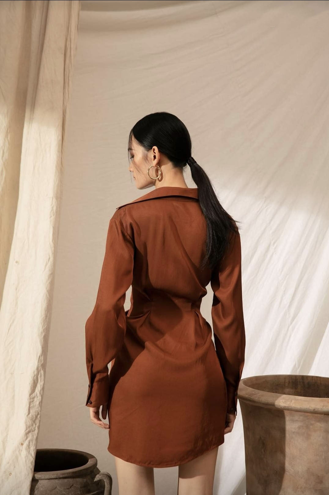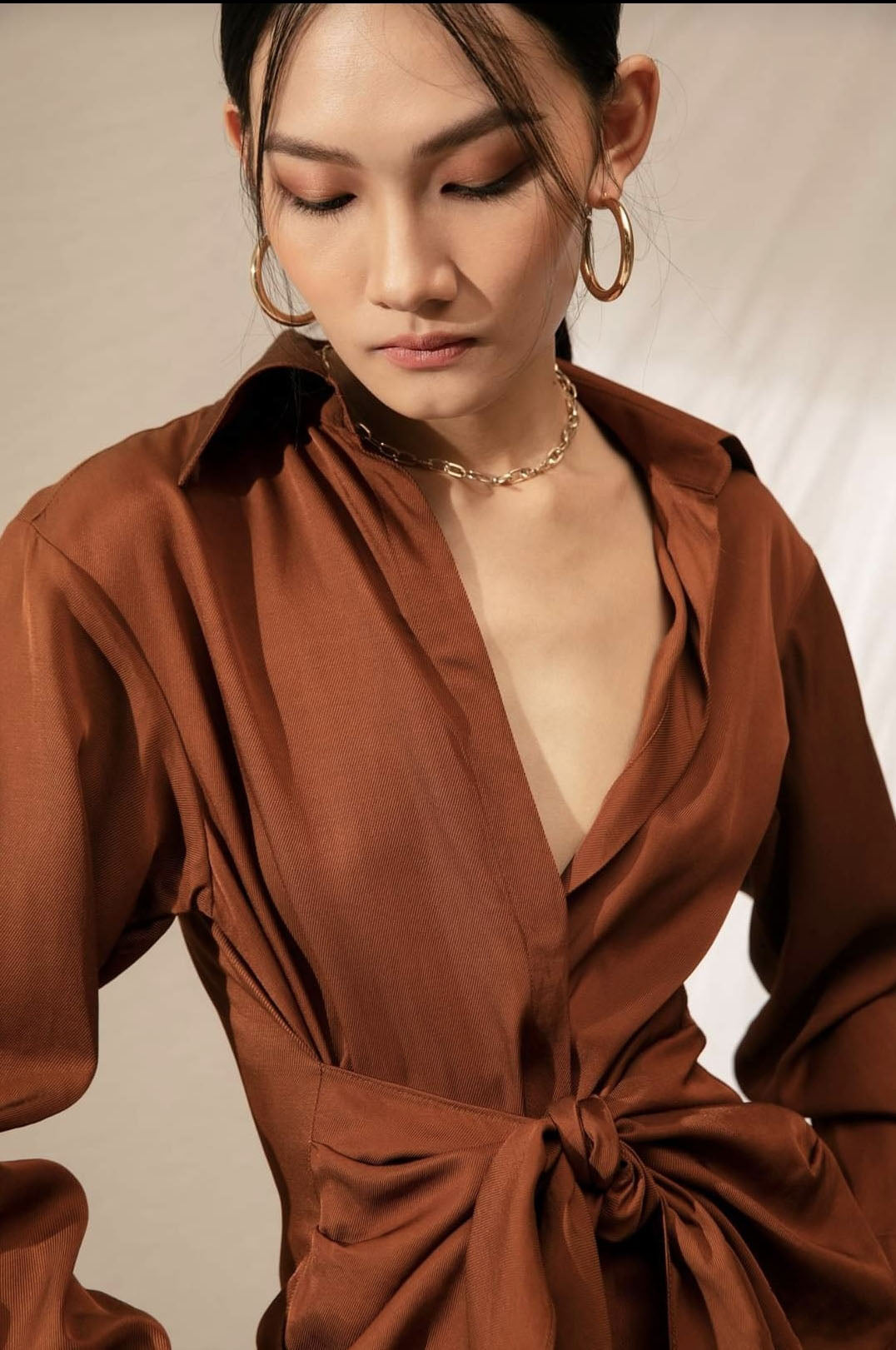Cette robe chemise sophistiquée en soie signée Sarah Luton est taillée pour la femme moderne qui apprécie le minimalisme raffiné. Confectionnée en soie douce, elle présente un lien flatteur sur le devant qui cintre la taille et sublime votre silhouette avec une allure discrète. Son col pointu et son décolleté en V profond subliment la pièce, la rendant polyvalente pour des occasions décontractées comme raffinées. Avec ses manches longues et son ourlet arrondi, elle allie structure et fluidité. Portée avec des talons ou des chaussures plates, cette robe en soie promet une sophistication naturelle à chaque pas.
