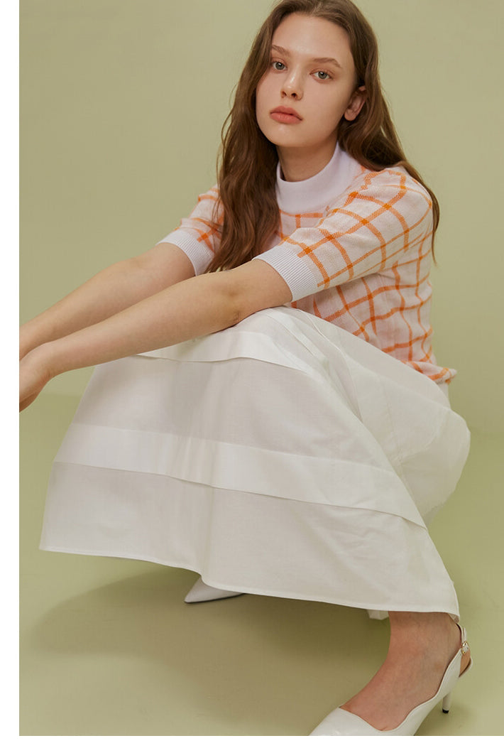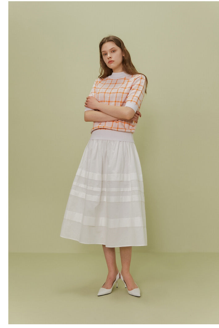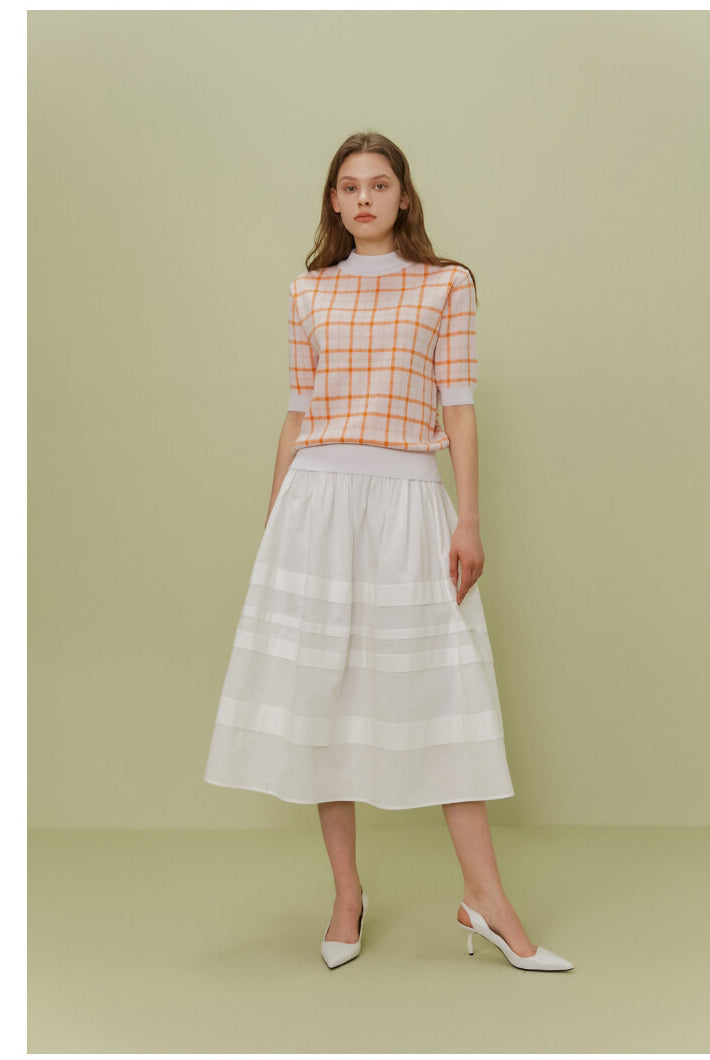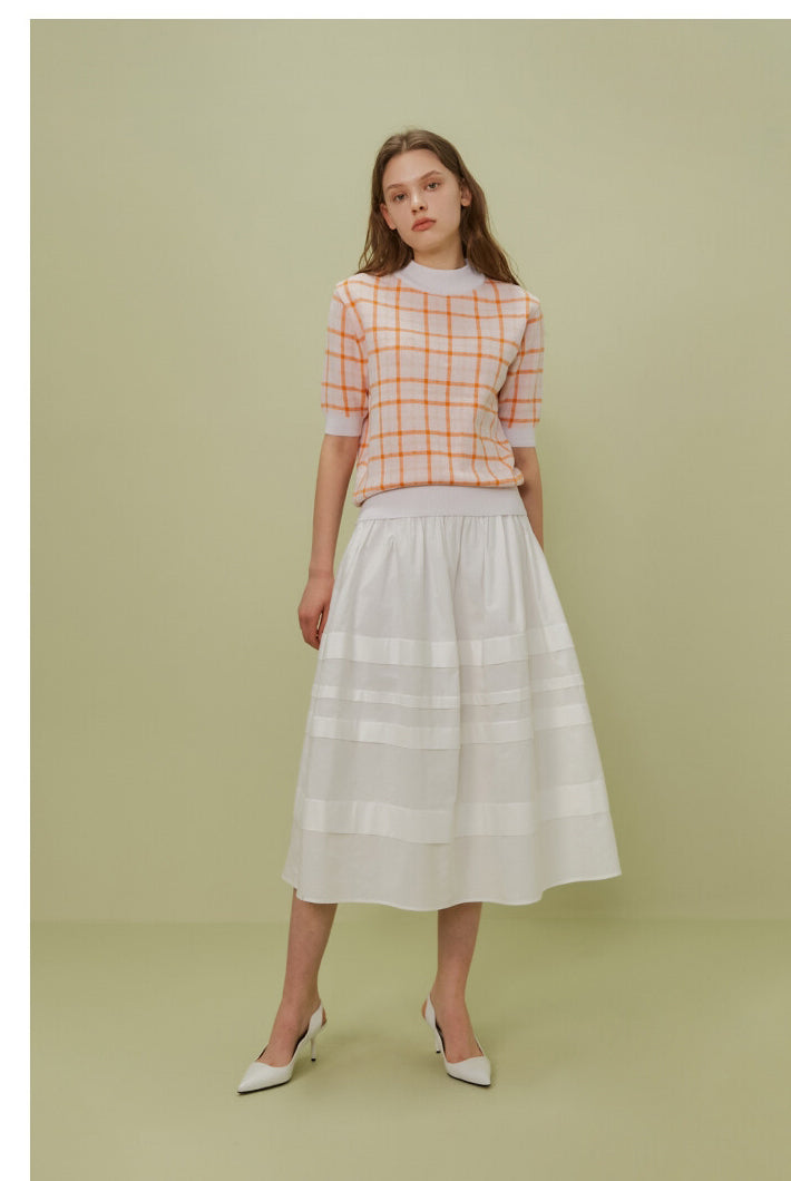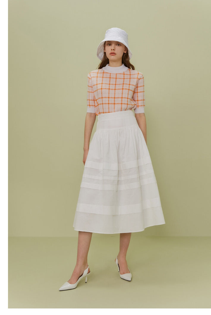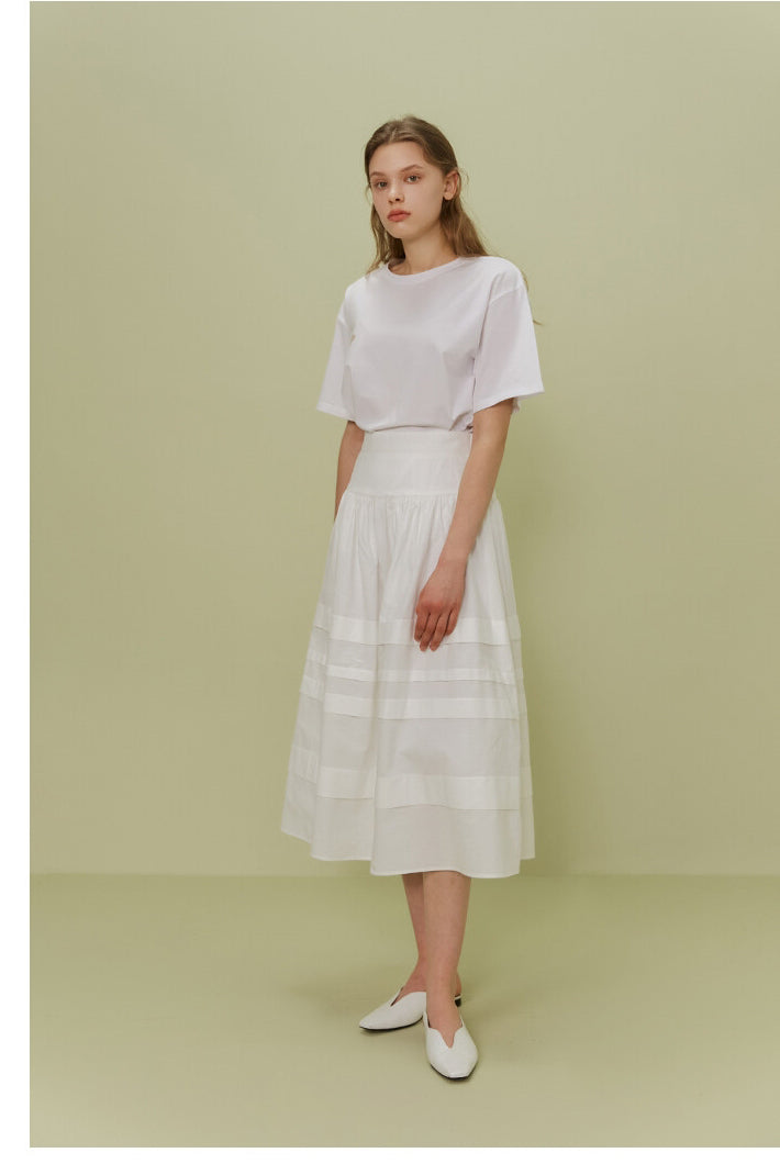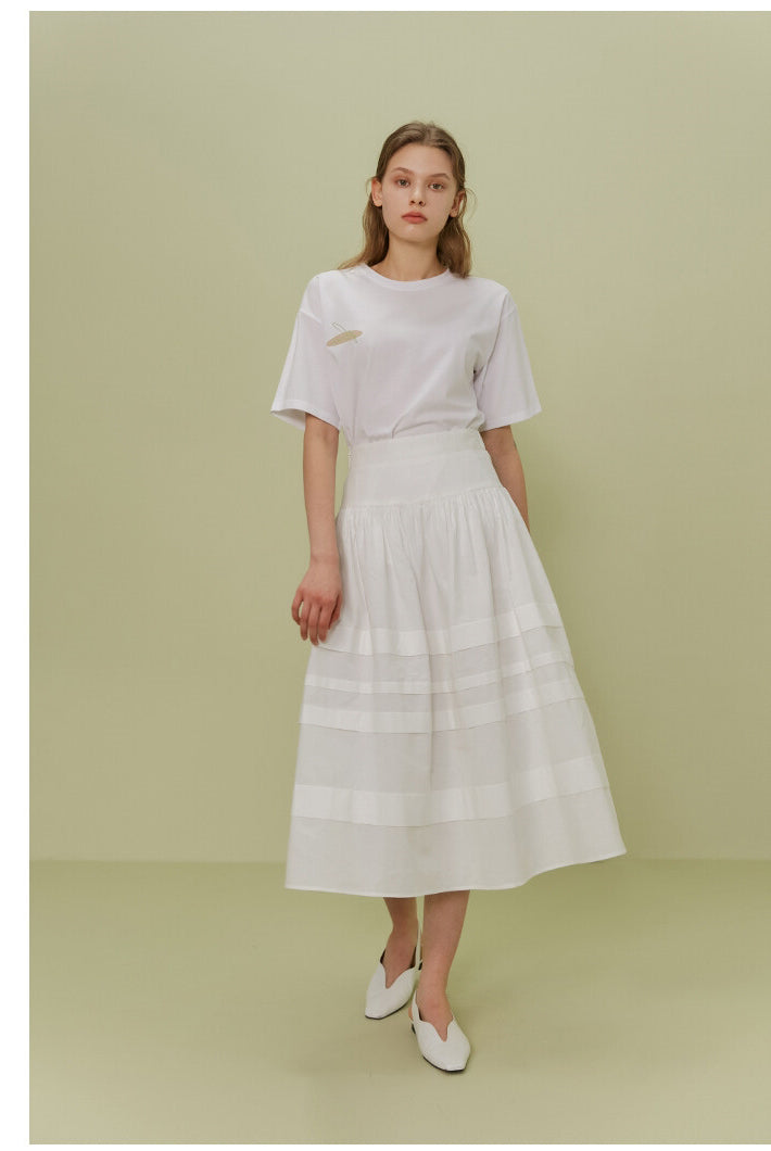 The Poplin Skirt by Sarah Luton is a timeless piece crafted in airy cotton poplin, designed to deliver refined volume and fluid elegance. Its wide elasticated waistband offers comfort and structure, while the tonal panel details add subtle dimension and sophistication. With a flattering A-line silhouette and a midi length that moves beautifully with every step, this skirt is ideal for both daytime charm and evening polish. Pair it effortlessly with tucked-in tops or lightweight knits for a crisp, elevated look.