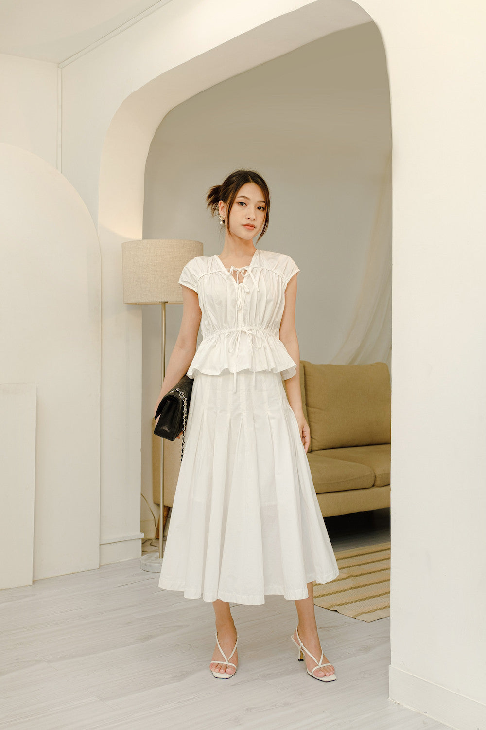 This cotton poplin top from Sarah Luton brings fresh elegance to warm-weather styling with its crisp texture and soft femininity. The design features a gathered neckline with delicate tie-front detailing, short cap sleeves, and a flattering peplum silhouette that cinches gently at the waist. Made from breathable cotton poplin, it offers both comfort and structure—ideal for pairing with high-waisted skirts or trousers. Whether styled casually or dressed up, this versatile piece adds a graceful, romantic touch to any outfit. A timeless staple for refined daytime looks or relaxed evening wear.