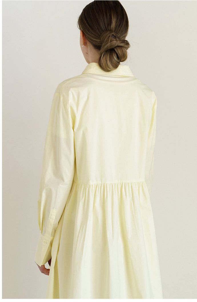The Sarah Luton poplin dress embodies effortless elegance with its crisp silhouette and refined tailoring. Crafted from premium poplin, it features a classic shirt collar, a button-down front, and a gently gathered waistline that flatters the figure. The midi length adds a sophisticated touch, making it perfect for both casual and refined occasions. Whether styled with flats or heels, this timeless dress ensures comfort and polish all day long.
