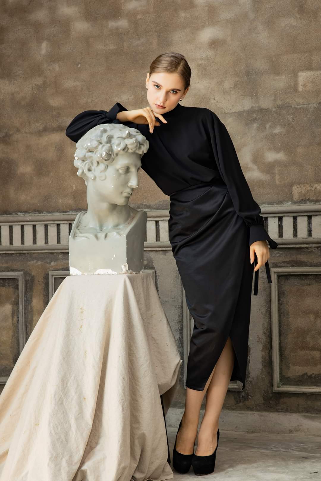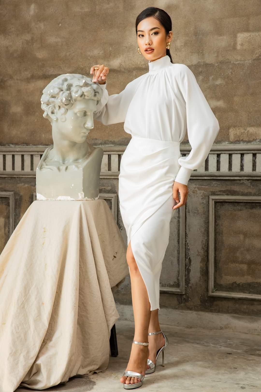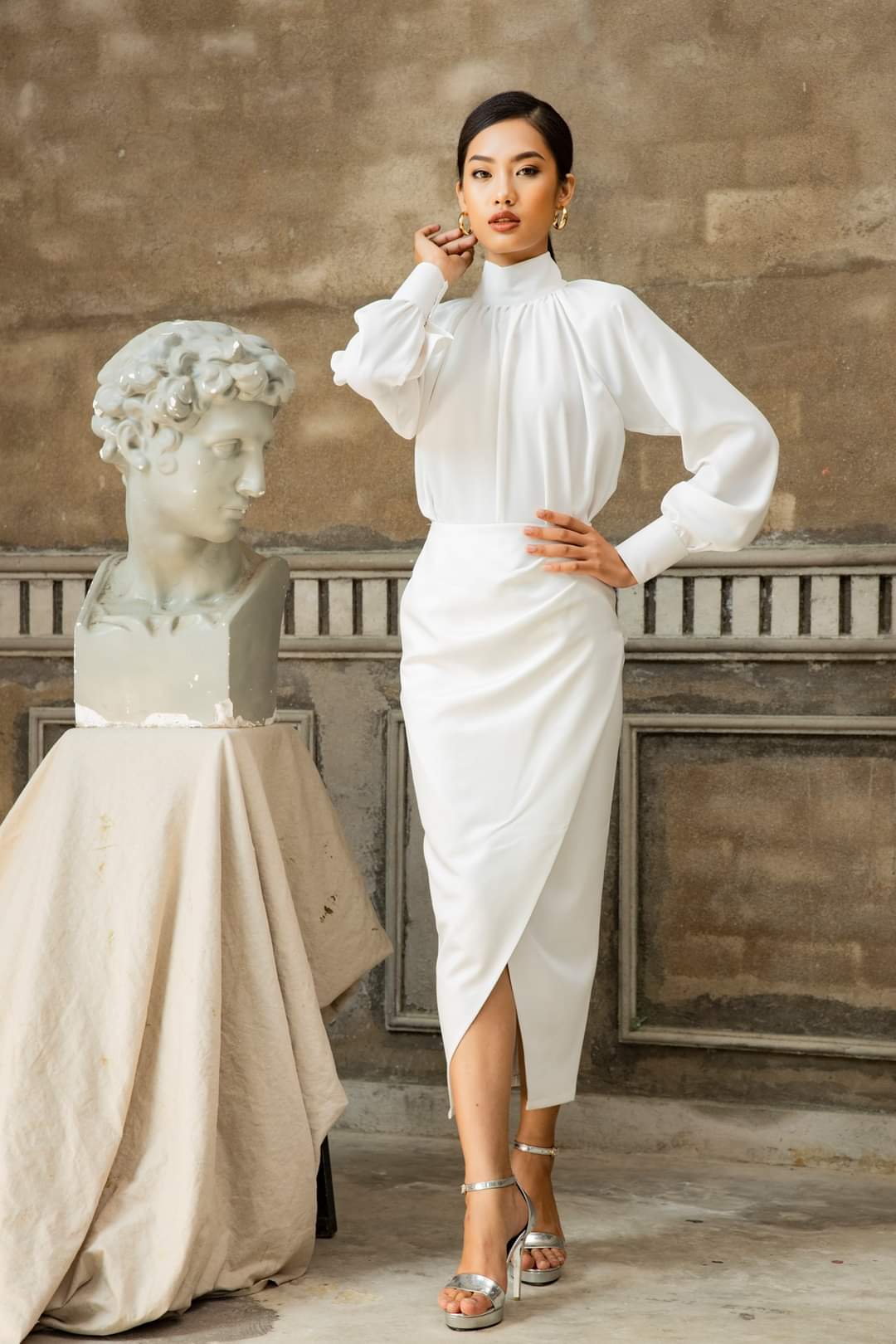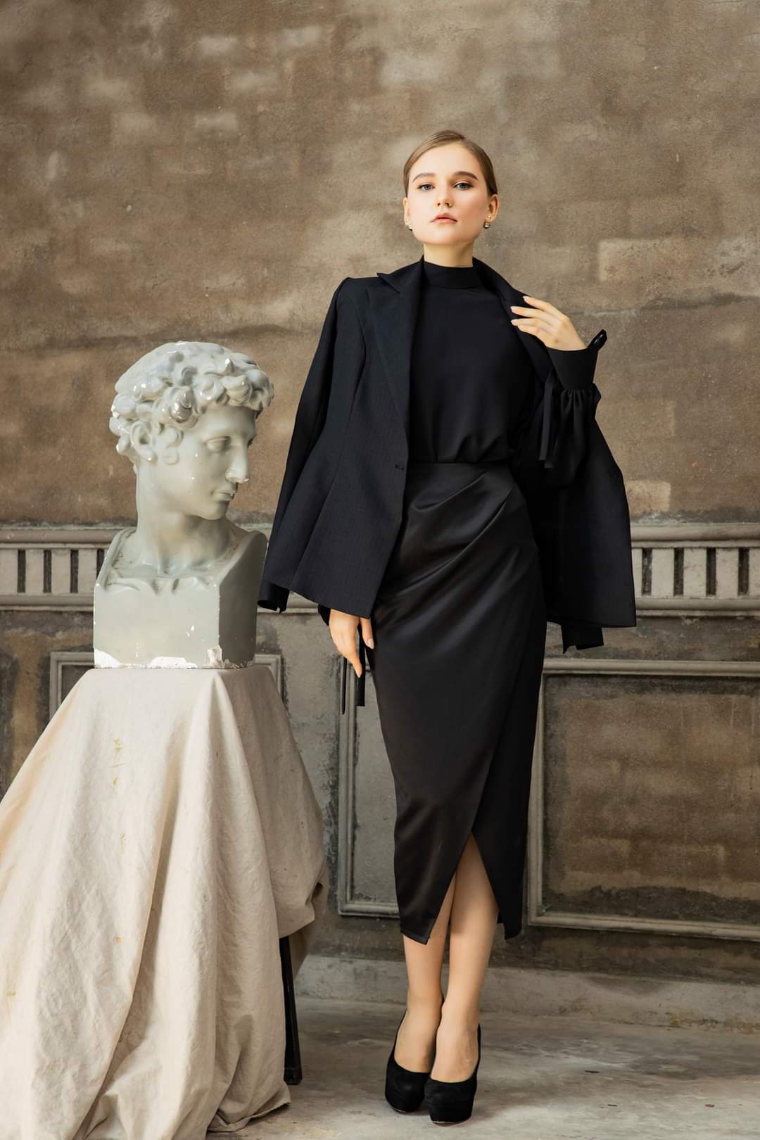 This silk midi skirt is the epitome of sophisticated femininity, featuring a luxurious draped silhouette and artful ruching along the side. The sleek construction is elevated by a daring yet refined front slit, creating graceful movement with every step. Made from fluid silk, the design softly hugs the figure while maintaining comfort and elegance. Whether styled for formal events or elevated everyday looks, this piece by Sarah Luton offers timeless glamour with a contemporary edge—an essential addition to any refined wardrobe.