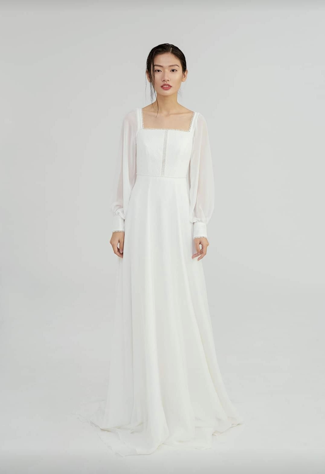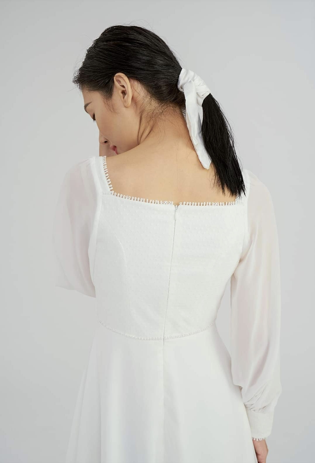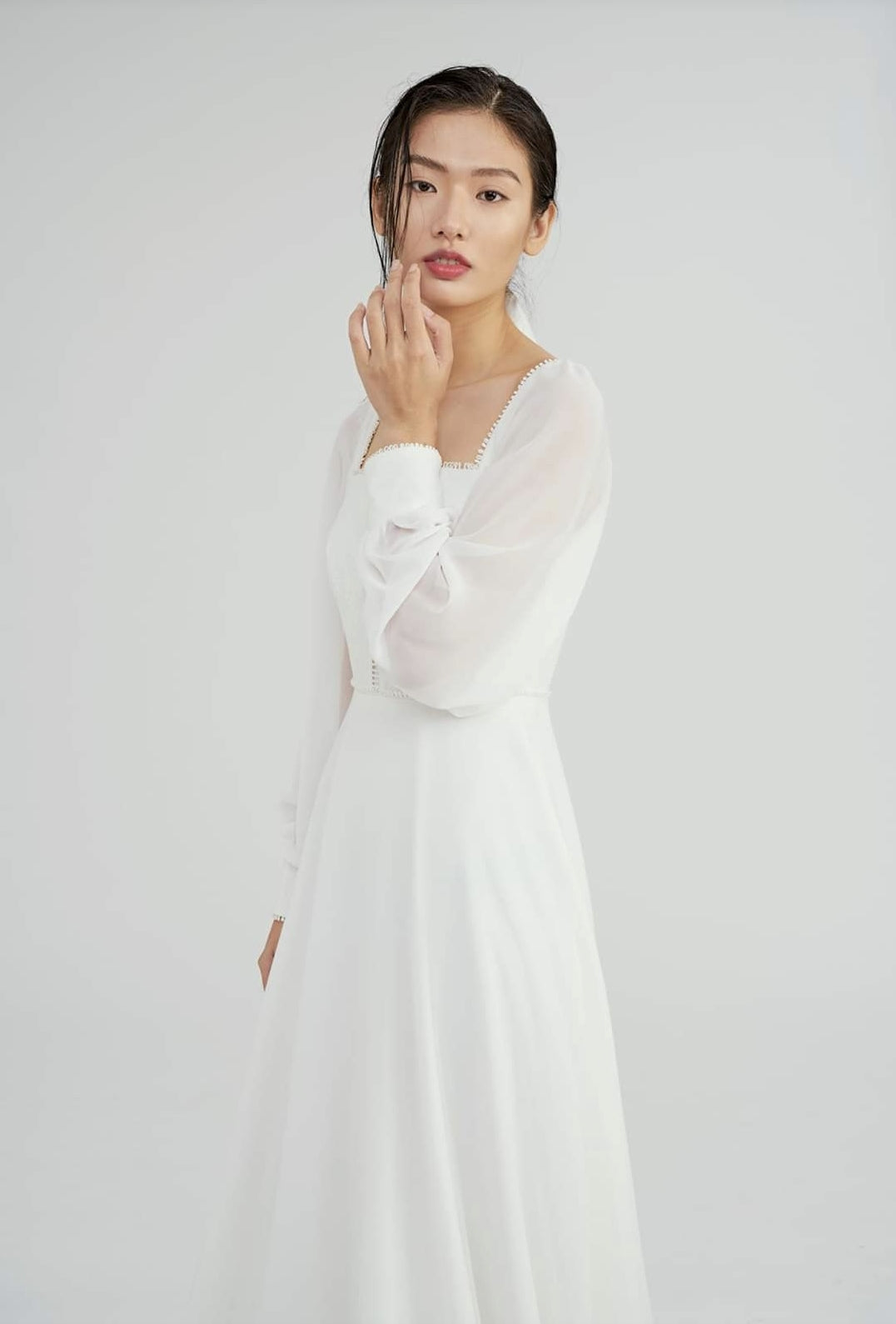 This long-sleeve organza dress from Sarah Luton embodies modern elegance with timeless grace. Crafted from lightweight organza, it features a softly structured bodice, a square neckline framed by sheer voluminous sleeves, and a flowing A-line silhouette that moves with ease. The delicate fabric and refined design make it an ideal choice for garden parties, formal gatherings, or bridal-inspired occasions. Sarah Luton’s meticulous tailoring ensures a flattering fit that blends sophistication with a whisper of romance. Whether worn with heels or styled more casually, this dress is designed to turn heads while feeling effortless.