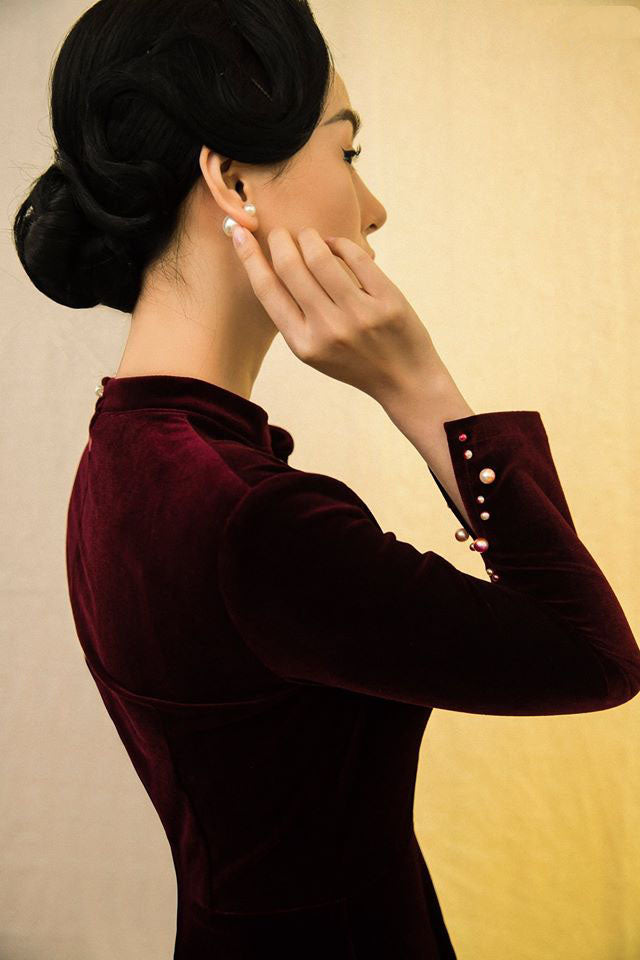 Elevate your evening wardrobe with this refined velvet dress from Laura Ren, designed to exude sophistication and grace. Crafted from rich, textured velvet, the design features a structured mandarin collar and a front button-down detail adorned with pearl-like embellishments for a touch of timeless charm. The long sleeves are finished with matching pearl button cuffs, while the flattering A-line silhouette skims the figure effortlessly. Whether styled with classic pumps or modern accessories, this dress is perfect for special gatherings, formal dinners, or celebratory events. Embrace elegance with every step in this signature Laura Ren creation.
