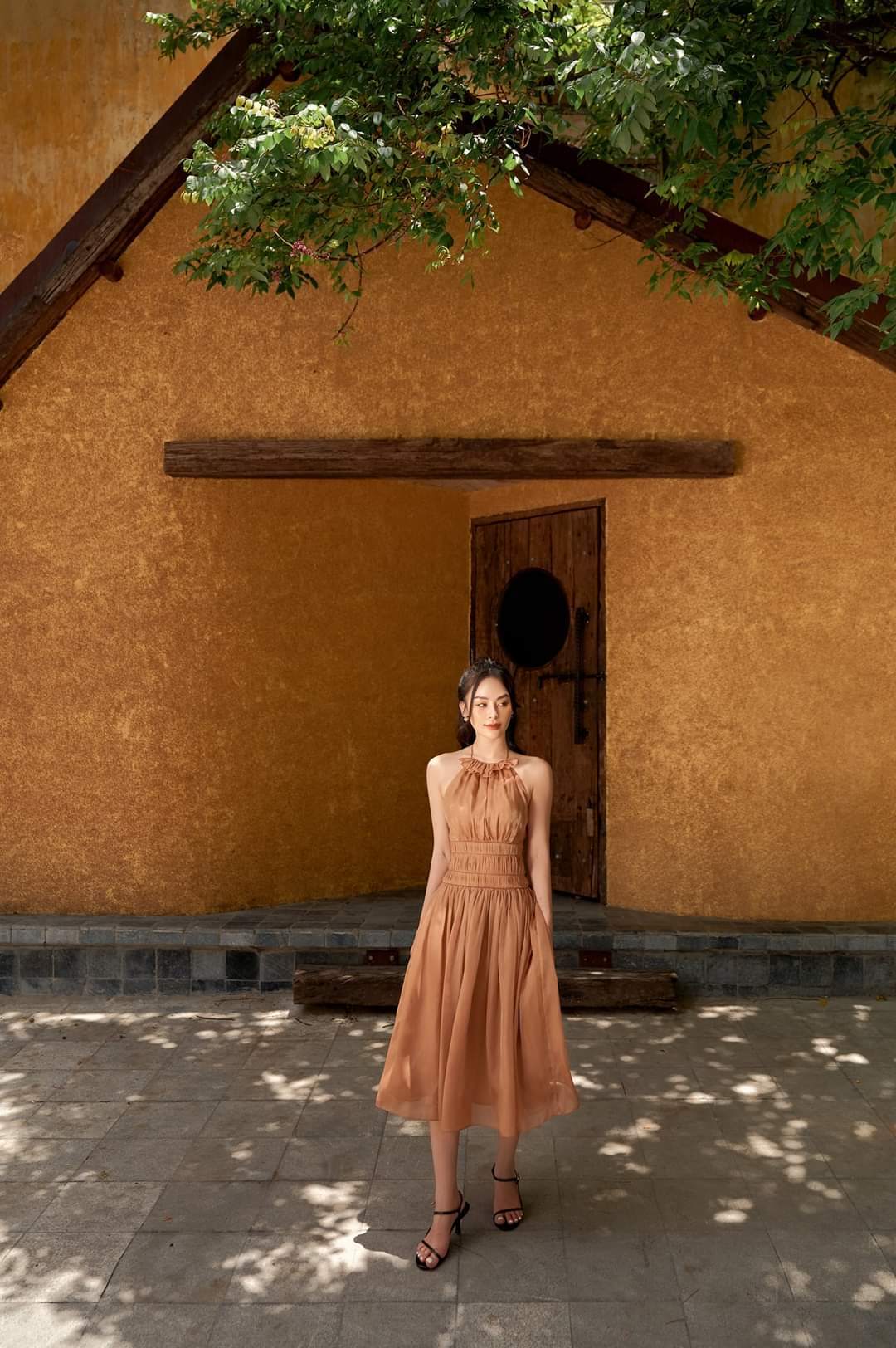 This elegant organza dress from Sarah Luton brings together refined texture and timeless design. Crafted from airy organza, the halter neckline and ruched bodice highlight the shoulders while offering a flattering fit. The softly pleated skirt flows into a graceful midi length, creating volume without weight. Ideal for warm-weather events or sophisticated daytime looks, this dress showcases the brand’s signature attention to detail and feminine silhouettes. A must-have staple for your contemporary occasionwear wardrobe.