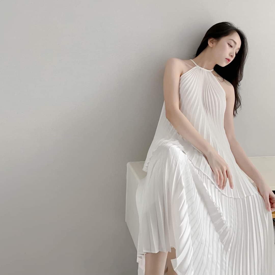 This pleated silk midi dress from Sarah Luton exudes sophistication with its modern halterneck cut and flowing A-line silhouette. Crafted from smooth silk with a luminous sheen, this design flatters the figure with precise pleating that creates elegant movement. The minimalist backless construction enhances the feminine appeal while maintaining an air of understated luxury. Ideal for both daytime refinement and evening charm, this silk dress from Sarah Luton is the definition of versatile elegance for the contemporary wardrobe.