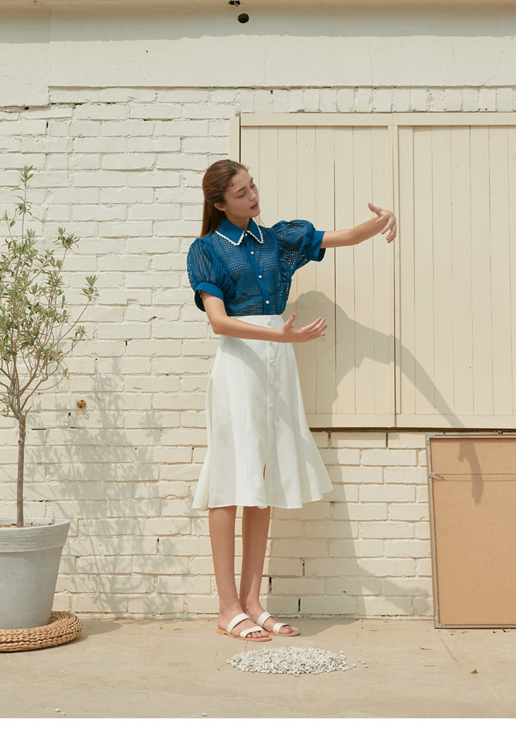 Elevate everyday dressing with this timeless linen skirt from Sarah Luton. Designed with a high-waisted silhouette and a clean button-front detail, it’s tailored from breathable, premium linen for effortless elegance. The flared hem adds graceful movement, making it perfect for both daytime outings and summer soirées. Pair it with a structured blouse or a soft knit for refined versatility. A staple piece in every elevated wardrobe.