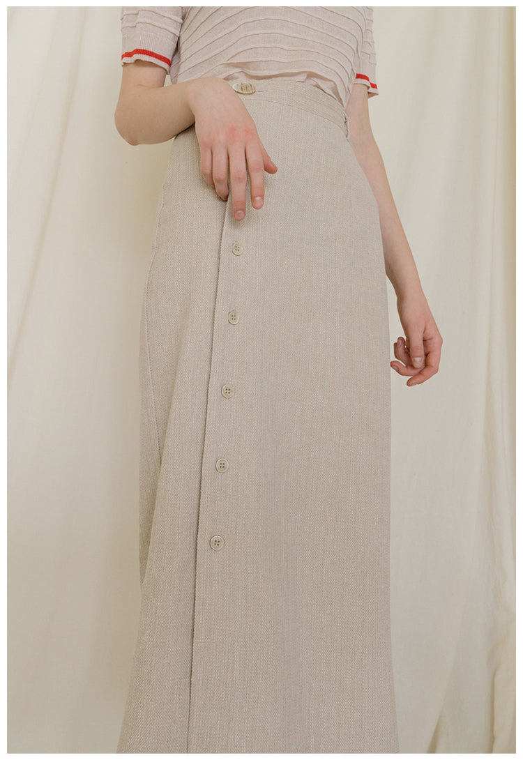 The Sarah Luton linen midi skirt embodies a modern take on timeless tailoring. Cut from premium linen blend, this high-waisted silhouette is defined by a smooth drape and elegant structure. The side button closure adds a refined touch while elongating the figure, and the subtle A-line cut enhances its graceful flow. Designed for effortless styling, this skirt transitions seamlessly from polished daytime looks to sophisticated evening wear.