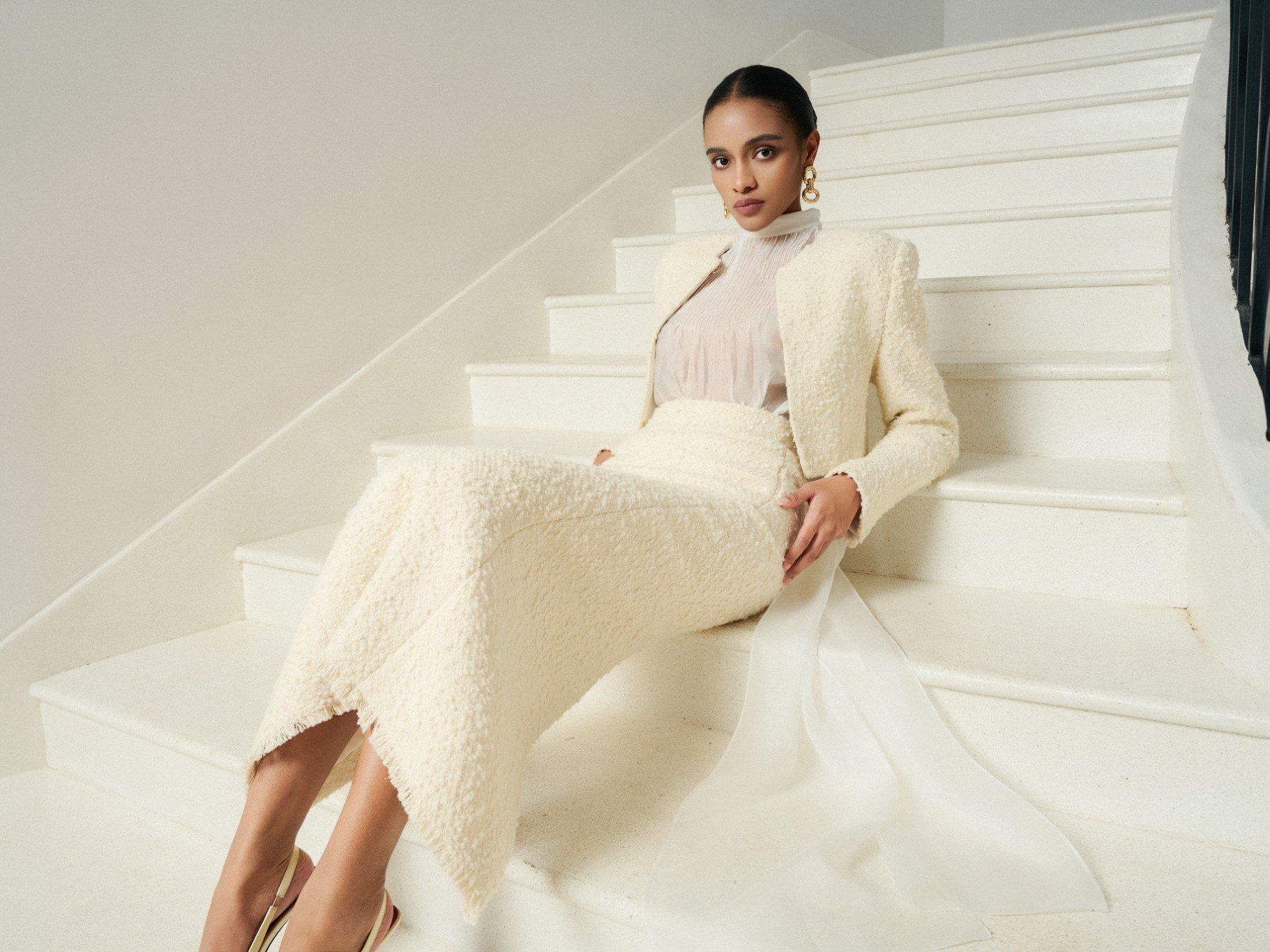 The blend tweed skirt by Laura Ren brings understated elegance to modern tailoring. Designed with a high-waisted fit and clean midi length, this skirt showcases the brand’s signature emphasis on refined silhouettes and luxe fabric textures. The structured cut elongates the figure while the raw hem adds a contemporary touch. Crafted from richly textured blend tweed, it offers subtle volume and depth with every step. Perfect for pairing with the coordinating jacket or a silk blouse, this skirt reflects the timeless sophistication central to the Laura Ren aesthetic.