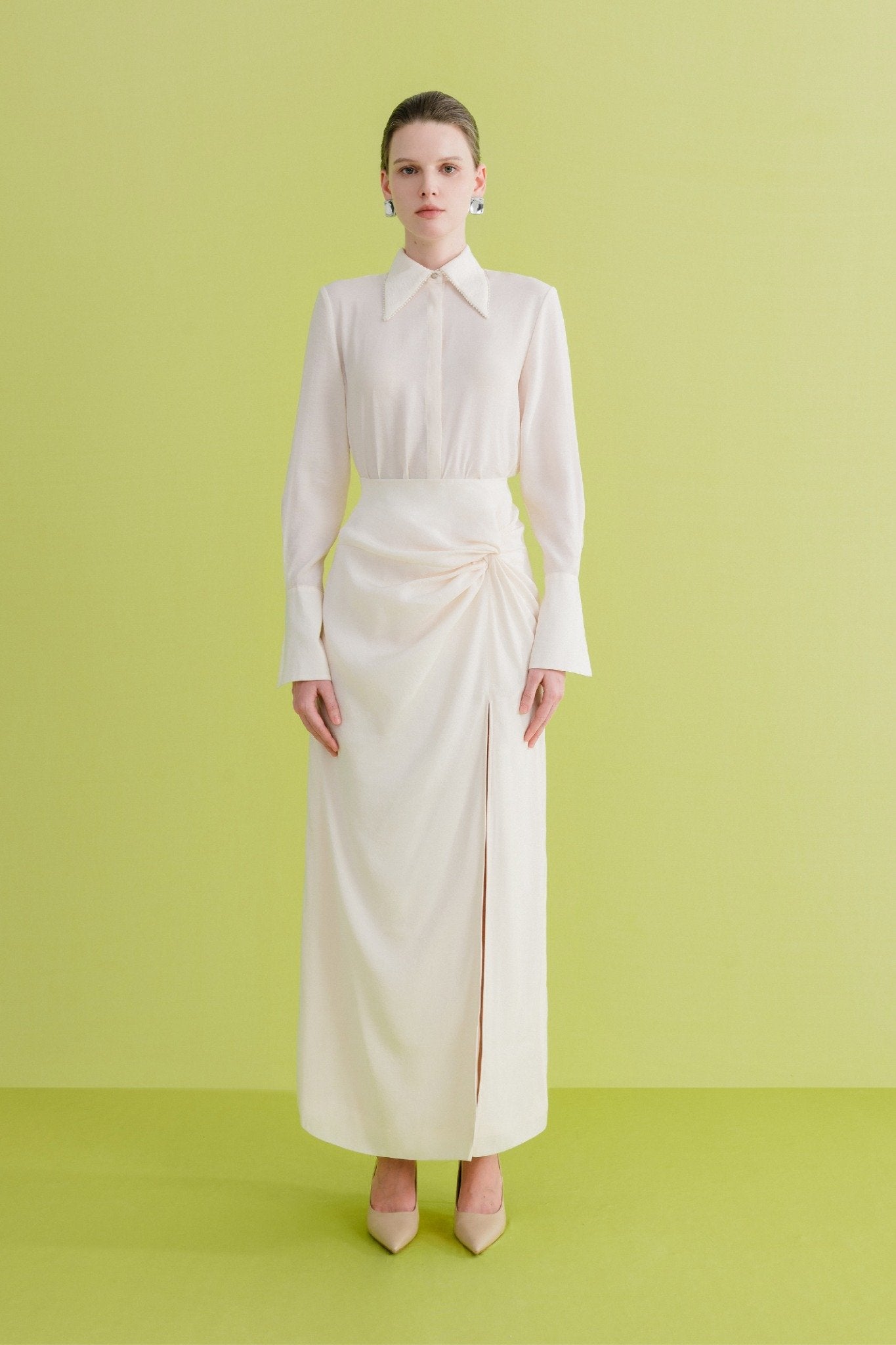 Laura Ren presents a high-waisted satin skirt designed to exude timeless elegance and modern femininity. Featuring a graceful draped side detail that accentuates the waist and a sleek front slit for ease of movement, this skirt is ideal for refined occasions or elevated everyday wear. The soft satin fabrication enhances its fluid silhouette, while the ankle-grazing length delivers a sophisticated profile. Perfect when paired with structured tops or fluid blouses, this Laura Ren skirt is a versatile essential in any modern wardrobe.