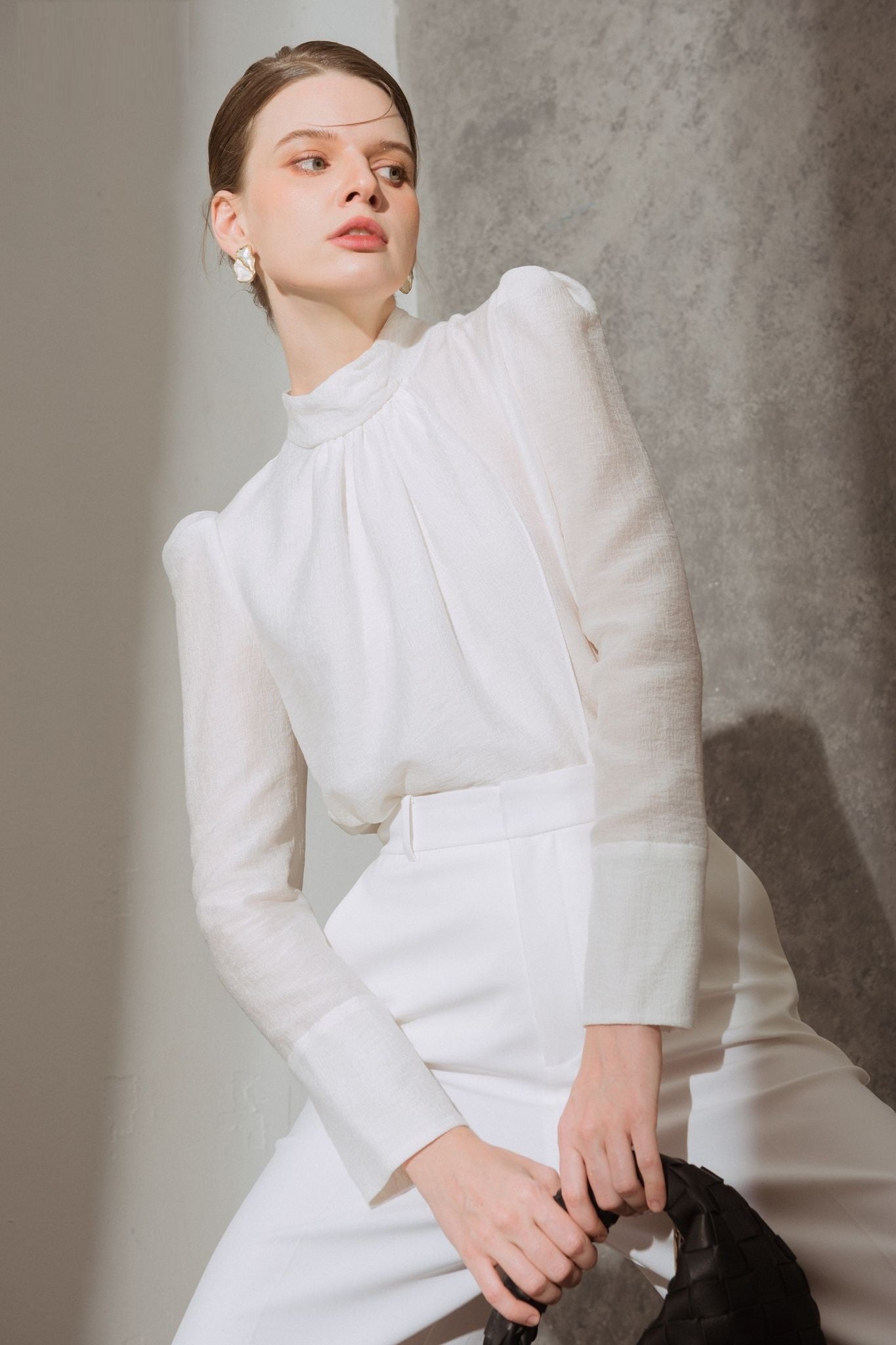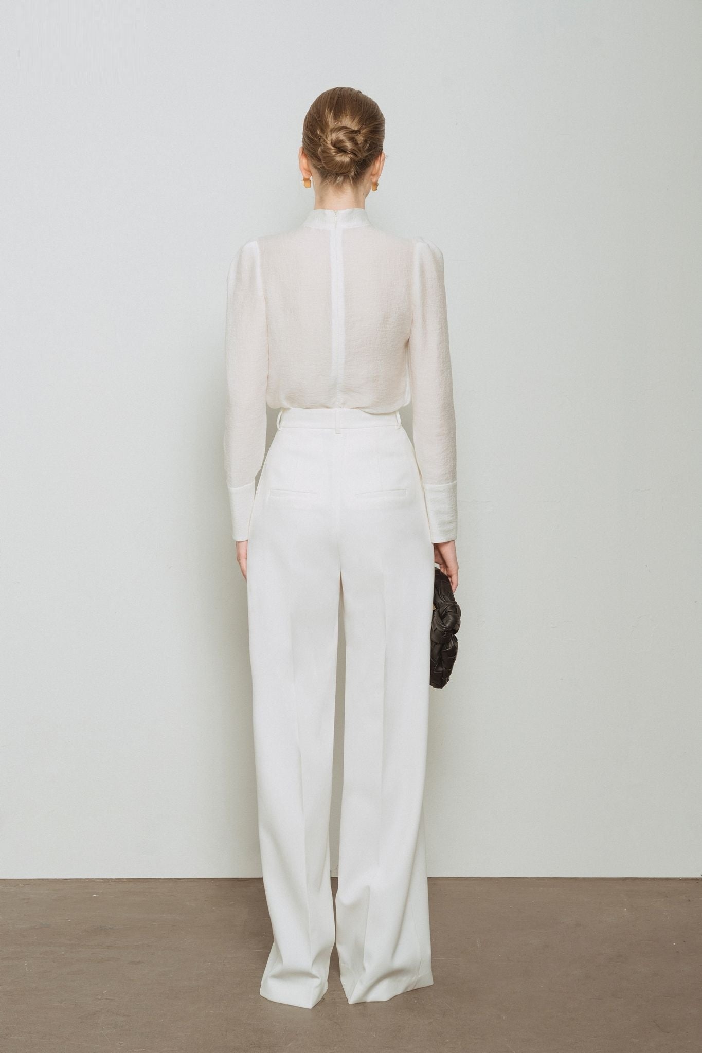 Elevate your tailored wardrobe with these high-waisted wide-leg trousers from Laura Ren, crafted in a fluid wool-blend for refined structure and effortless drape. Designed with a minimalist silhouette, these trousers feature a crisp front crease, discreet side pockets, and a concealed hook-and-bar closure for a polished finish. The extended leg line adds dramatic flair while maintaining a professional, versatile appeal. Ideal for pairing with sheer blouses or fitted tops, this style reflects Laura Ren’s dedication to clean tailoring and timeless elegance. A wardrobe essential for elevated daywear or understated evening dressing.