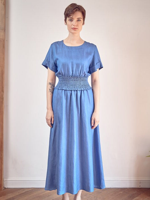Sarah Luton presents this effortlessly elegant linen midi dress, crafted from breathable, lightweight linen for all-day comfort. The design features a flattering smocked waistband that cinches the silhouette, short sleeves with subtle cuffs, and a round neckline for a minimalist touch. Perfect for warm-weather days, this dress flows beautifully with every step, offering a relaxed yet refined look. Ideal for casual outings, summer vacations, or laid-back gatherings.