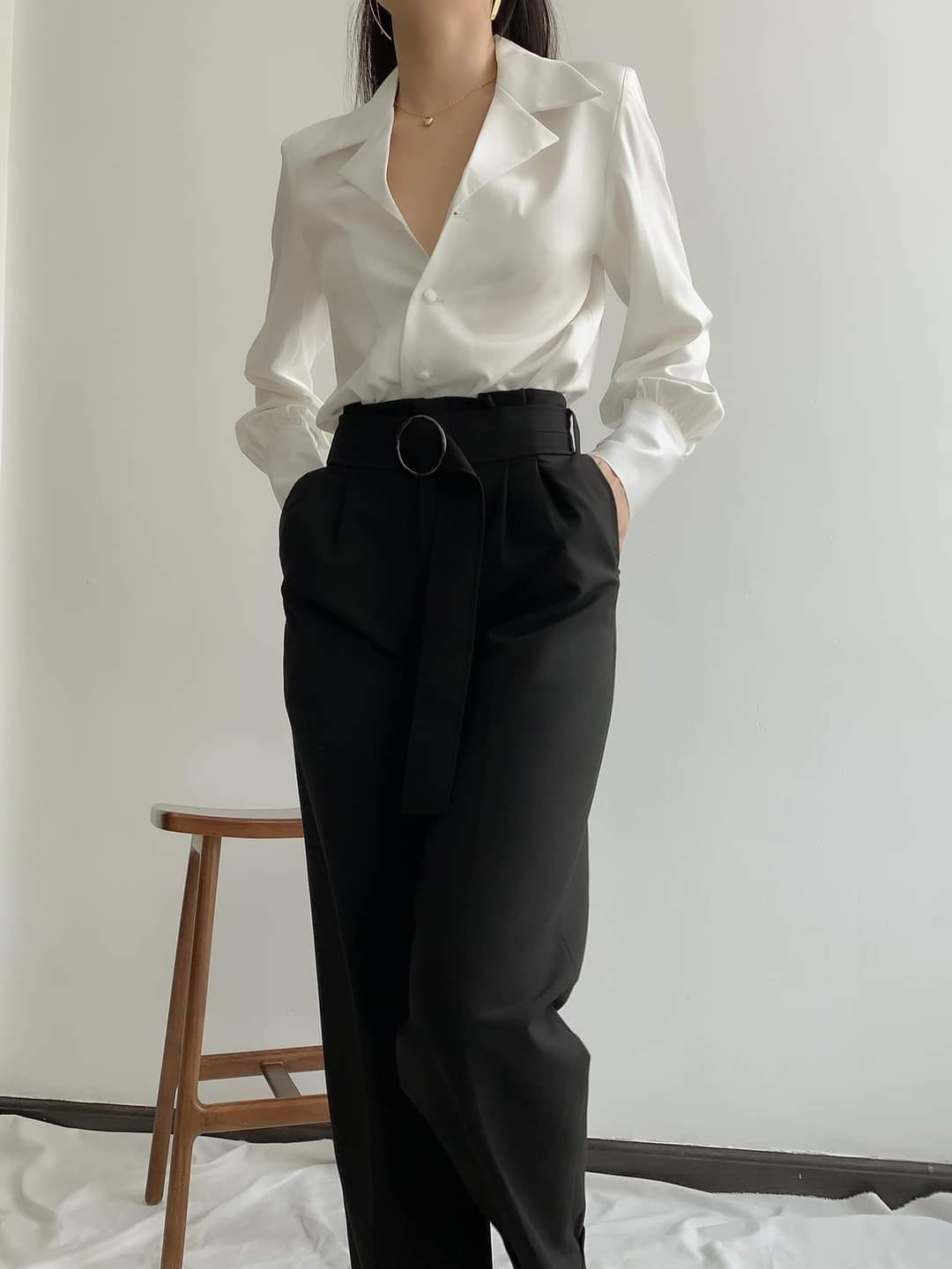 Elevate your wardrobe with this refined silk blouse from Sarah Luton, designed for both effortless style and versatile sophistication. Crafted from smooth, breathable silk, this blouse features a structured notched collar, clean button-down front, and elongated cuffs that add a tailored touch. The slightly relaxed fit allows it to tuck easily into trousers or skirts, making it ideal for polished office attire or dressed-down weekend looks. With its subtle sheen and soft drape, this silk blouse is a timeless essential for the modern woman. A signature piece by Sarah Luton, created for graceful impact and elevated everyday wear.