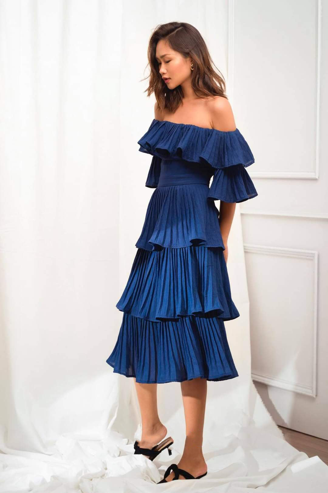 This off-shoulder pleated midi dress from Sarah Luton is crafted in a lightweight silk blend that flows effortlessly with every step. Featuring tiered pleats and layered ruffle detailing, this design offers a flattering A-line silhouette with romantic off-shoulder sleeves. Ideal for beach getaways, garden parties, or warm-weather gatherings, the breathable silk fabric ensures all-day comfort while maintaining elegant structure. Make a graceful statement in this beautifully constructed piece, perfect for your elevated summer wardrobe.