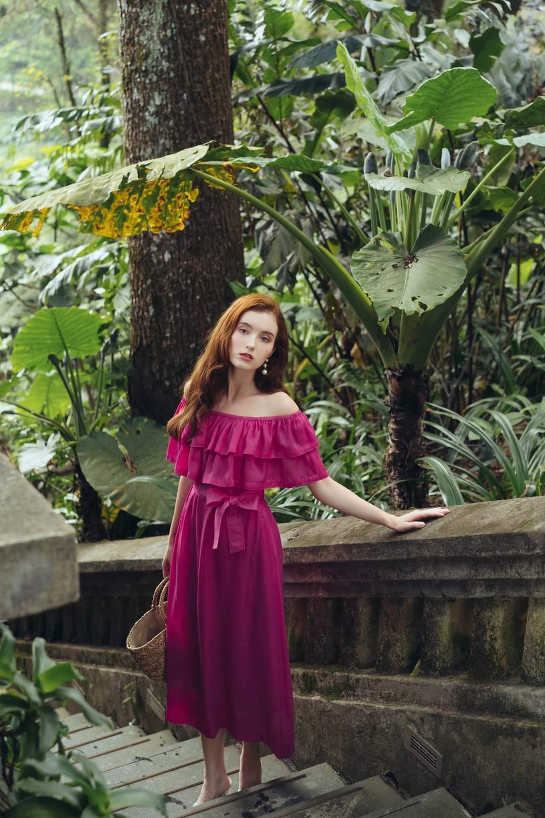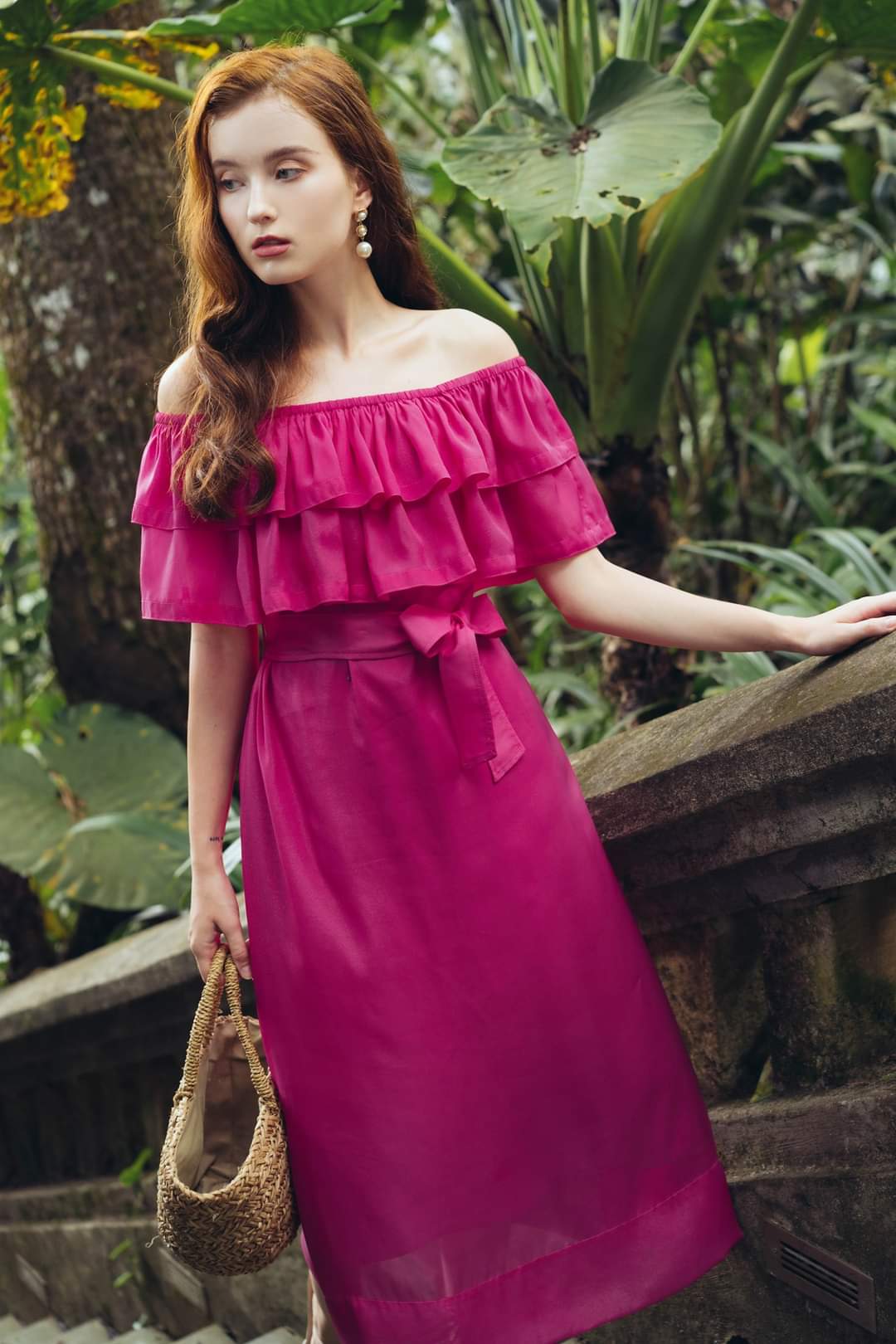 Designed for effortless elegance, this off-shoulder silk midi dress from Sarah Luton captures timeless femininity. Crafted from airy, smooth silk, it features tiered ruffle detailing across the neckline for a romantic touch and a flattering off-shoulder silhouette. The dress is cinched at the waist with a matching silk belt, enhancing its flowy, graceful shape. A soft midi-length skirt flows with every step, making it perfect for garden parties, holiday getaways, or summer evenings. Add a woven bag and heels to complete the elevated day-to-evening look.