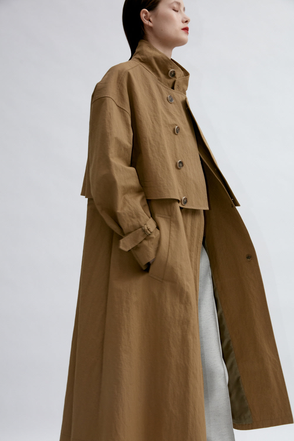 Experience modern tailoring with the Sarah Luton Double-Breasted Long Linen Jacket, crafted for the contemporary woman. This jacket features a structured stand collar, elegant asymmetrical button closure, and functional belted cuffs for added sophistication. Designed with a relaxed, flowing silhouette and versatile layering potential, the pure linen fabric ensures breathable comfort and effortless drape. Ideal for elevating your everyday wardrobe or making a statement in transitional seasons, this jacket seamlessly blends timeless design with practical style.