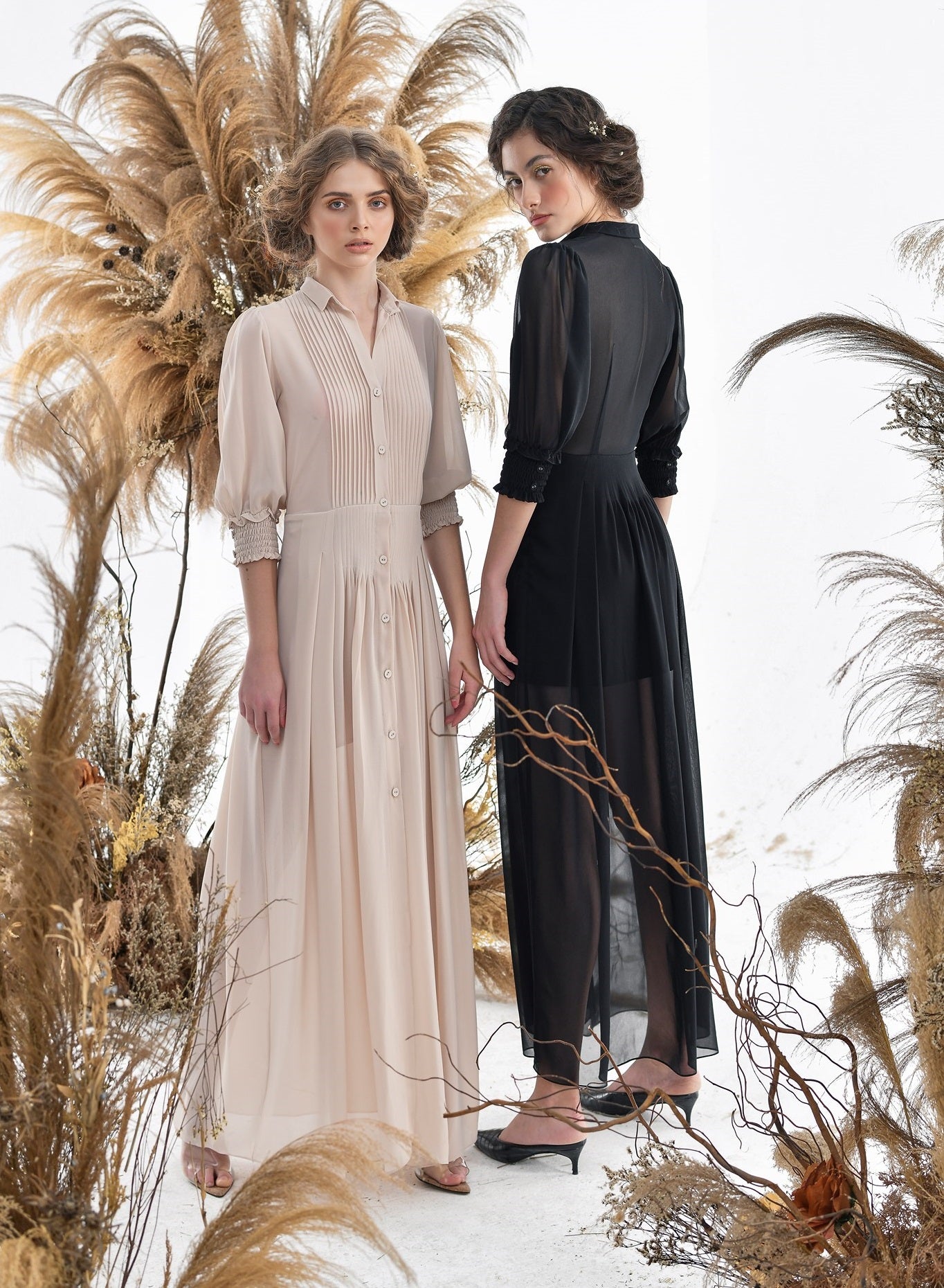 Crafted for elegance and grace, this organza dress from Sarah Luton features a flowing silhouette that effortlessly elevates any formal occasion. Made from lightweight sheer organza, the dress offers a soft drape with refined movement, while the long sleeves and structured bodice bring balance and sophistication. A cinched waist subtly defines the figure, and the ankle-grazing hemline adds a touch of drama. Whether in a light or dark tone, this organza dress delivers timeless appeal and luxurious texture, perfect for weddings, galas, or elevated day-to-evening styling.