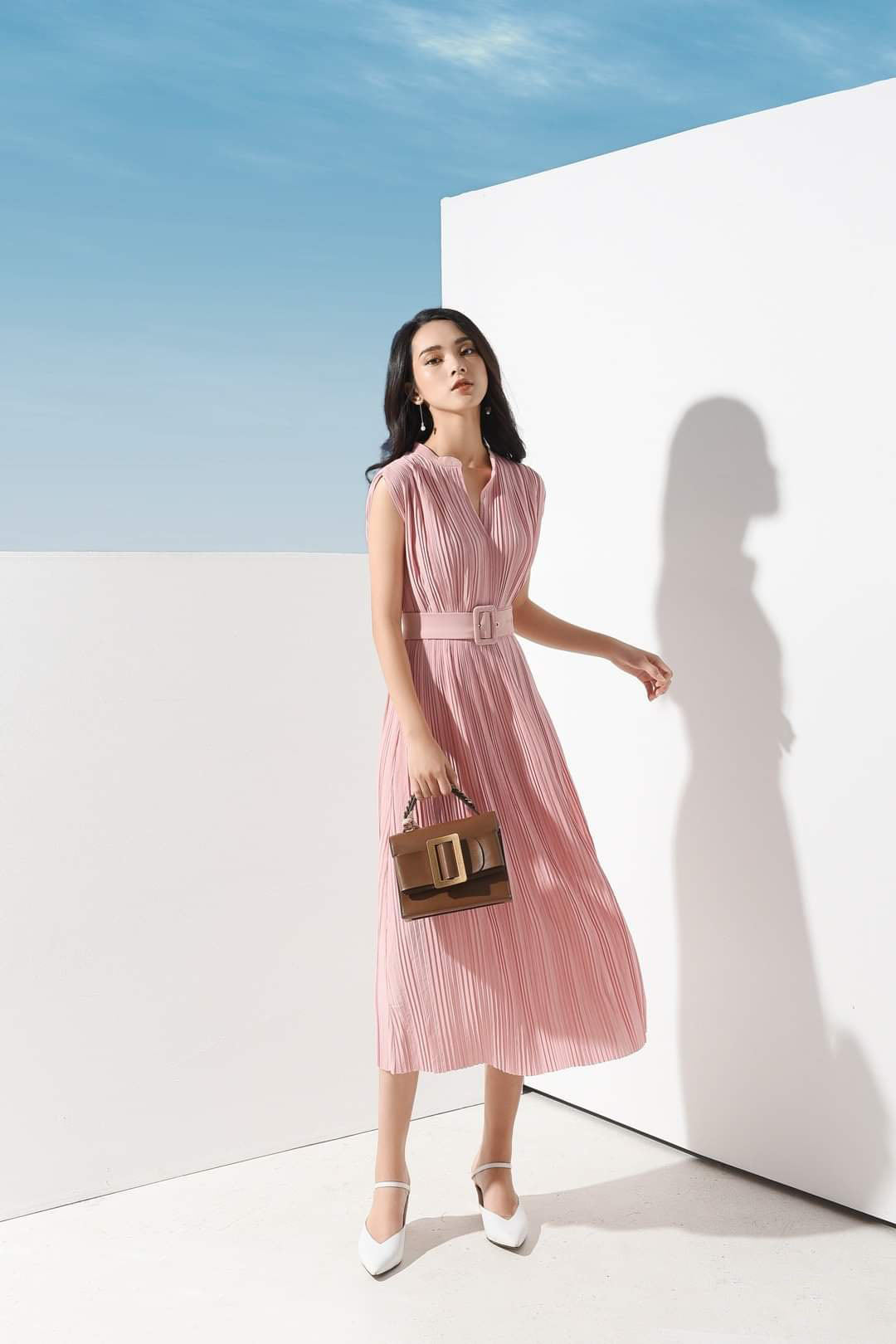Graceful movement meets refined craftsmanship in this pleated midi dress made from airy silk. Designed with a structured wide belt and cap sleeves, this silhouette softly defines the waist while offering flow and ease. The vertical pleats enhance the lengthening effect, making it a flattering choice for daytime elegance or elevated occasions. Sarah Luton brings a modern softness to classic tailoring, crafting a garment that transitions seamlessly from day to night. Delicate yet polished, this silk dress is a sophisticated wardrobe essential.