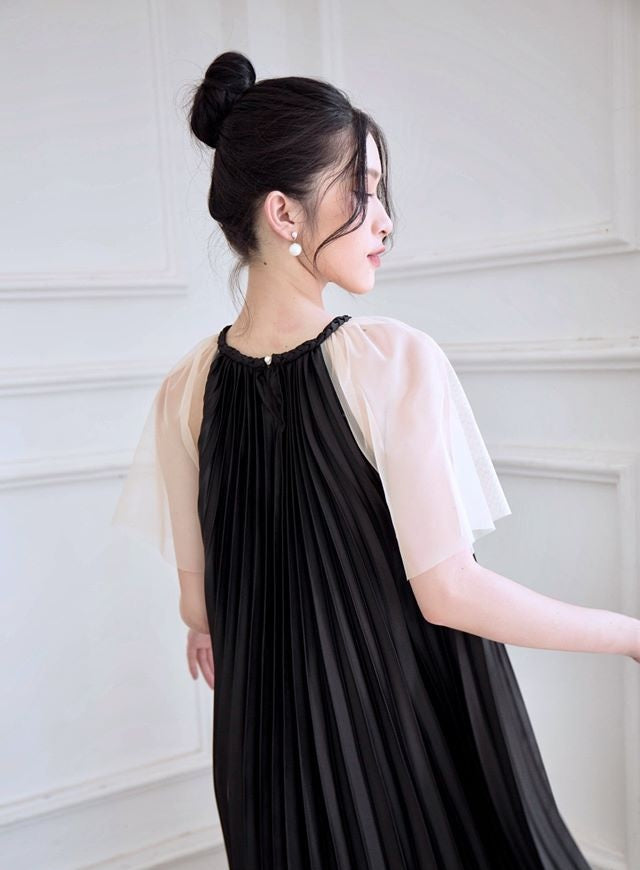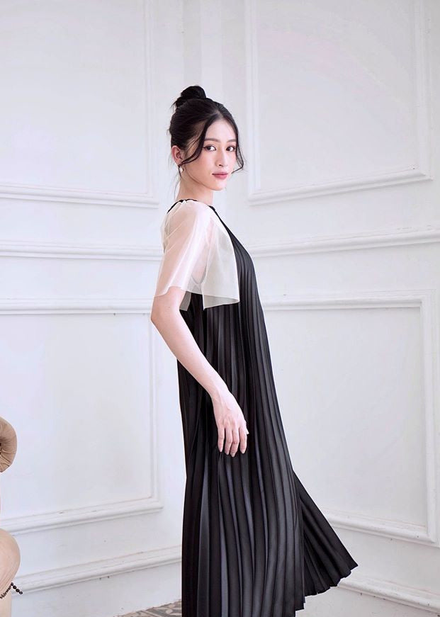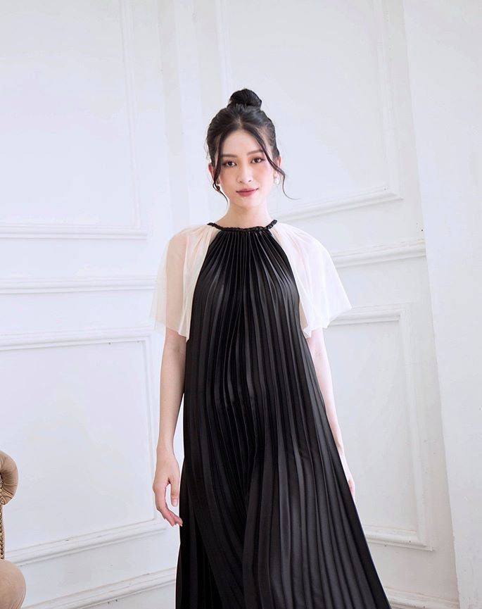 The Sarah Luton Pleated Midi Silk Dress blends graceful sophistication with modern ease. Designed in fluid silk, this piece features elegant vertical pleats that create dynamic movement and a flattering drape. Sheer flutter sleeves add a delicate, feminine touch while the gathered neckline completes the refined silhouette. A versatile style for both daytime charm and evening elegance, this dress brings elevated softness and effortless wearability.