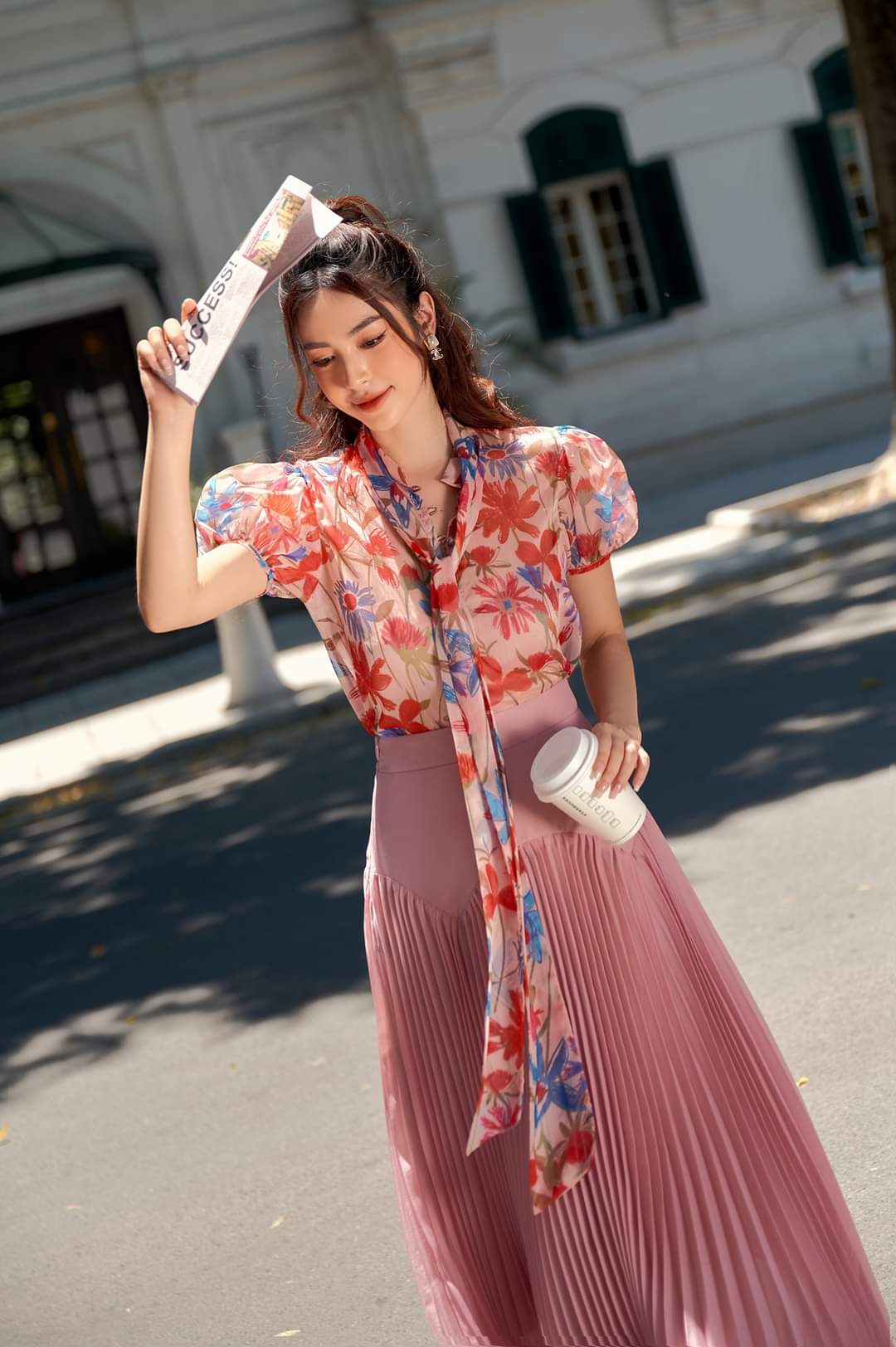 This flowing pleated organza midi skirt from Sarah Luton captures effortless elegance with its soft movement and flattering silhouette. Designed with a fitted waistband and flared hemline, it accentuates the waist while creating a graceful, feminine shape. The lightweight organza fabric offers volume without weight, allowing for breezy comfort and standout structure. Perfect for garden parties, daytime events, or elevated everyday dressing, this skirt pairs beautifully with fitted tops or printed blouses. A polished wardrobe essential for the woman who loves refined texture and flow.