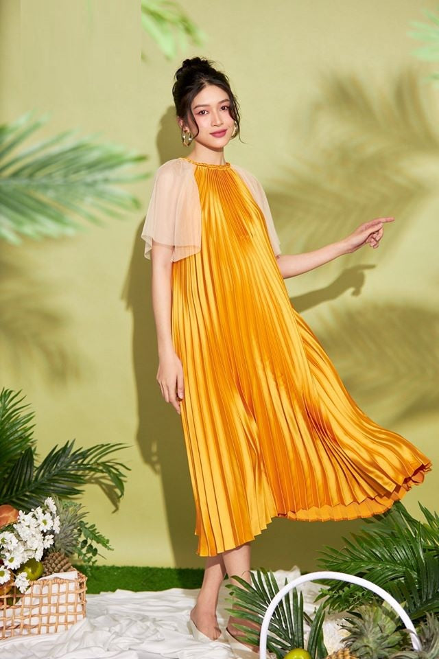 Sarah Luton presents a radiant pleated silk midi dress designed to elevate your daytime elegance. Crafted from premium silk, this dress features an airy A-line silhouette with graceful pleats that flow with every movement. The sheer flutter sleeves add a soft, romantic touch, while the gathered neckline brings a modern finish. Lightweight yet luxurious, it's perfect for garden parties, summer soirées, or an elevated everyday look. Designed to offer effortless sophistication and breathable comfort.