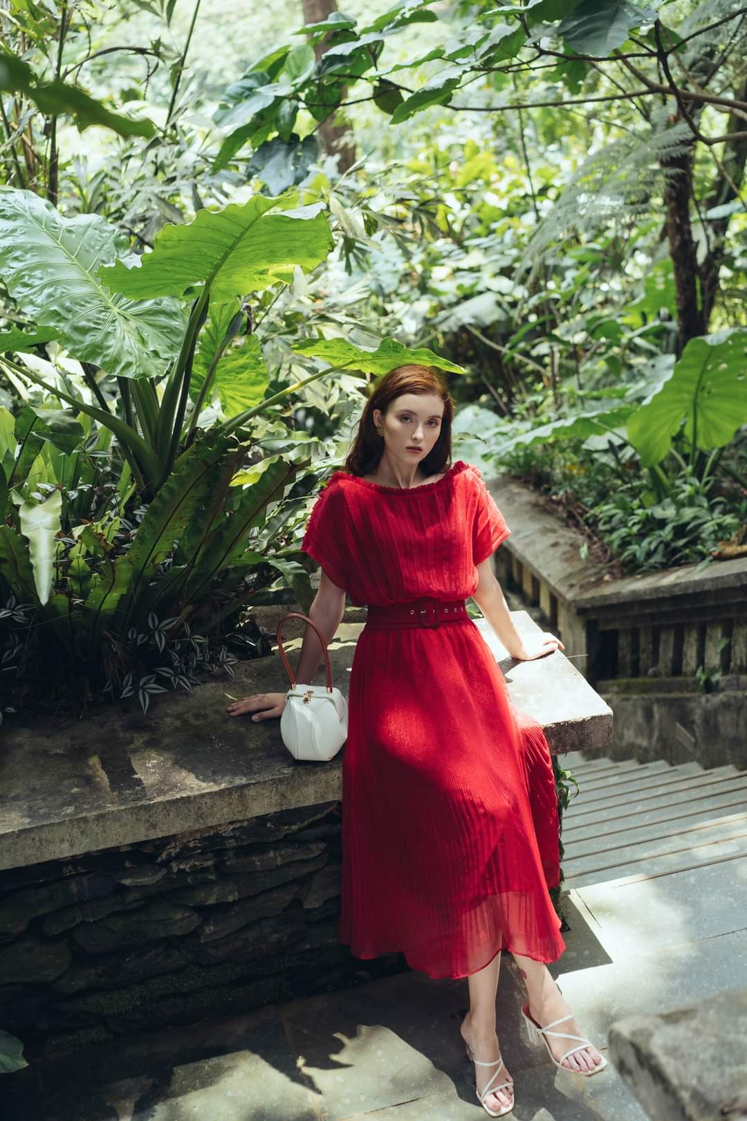This pleated silk midi dress by Sarah Luton blends refined elegance with effortless wearability. Designed with a soft gathered neckline and a flowing A-line silhouette, the dress features a tonal fabric belt that cinches at the waist for a flattering shape. Its lightweight silk fabric offers a fluid drape and a sheer overlay that adds romantic texture to every step. Whether worn for garden soirées or daytime events, this dress captures timeless sophistication with a modern edge. A must-have statement piece for elevated wardrobes, perfect for both resort settings and city chic styling.