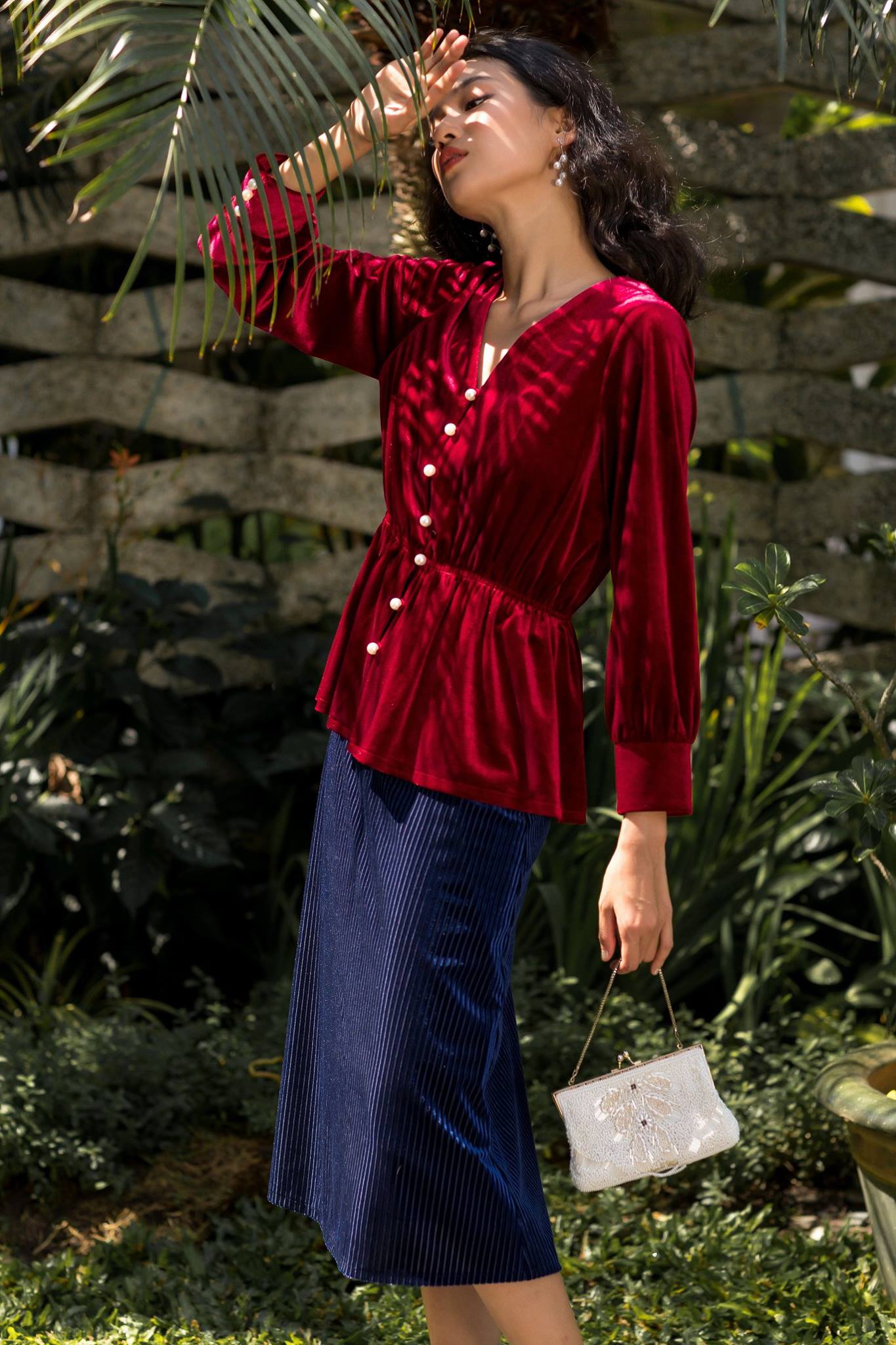 This velvet midi skirt from Laura Ren offers timeless elegance with a modern twist. Crafted in a rich pleated velvet fabric, it features a soft flare silhouette that moves beautifully with every step. The structured texture adds visual depth while maintaining comfort and fluidity. Designed to sit high on the waist, it flatters the figure and pairs effortlessly with blouses, knits, or tailored tops. Whether styled for daytime chic or evening refinement, this velvet skirt brings classic sophistication to any look.
