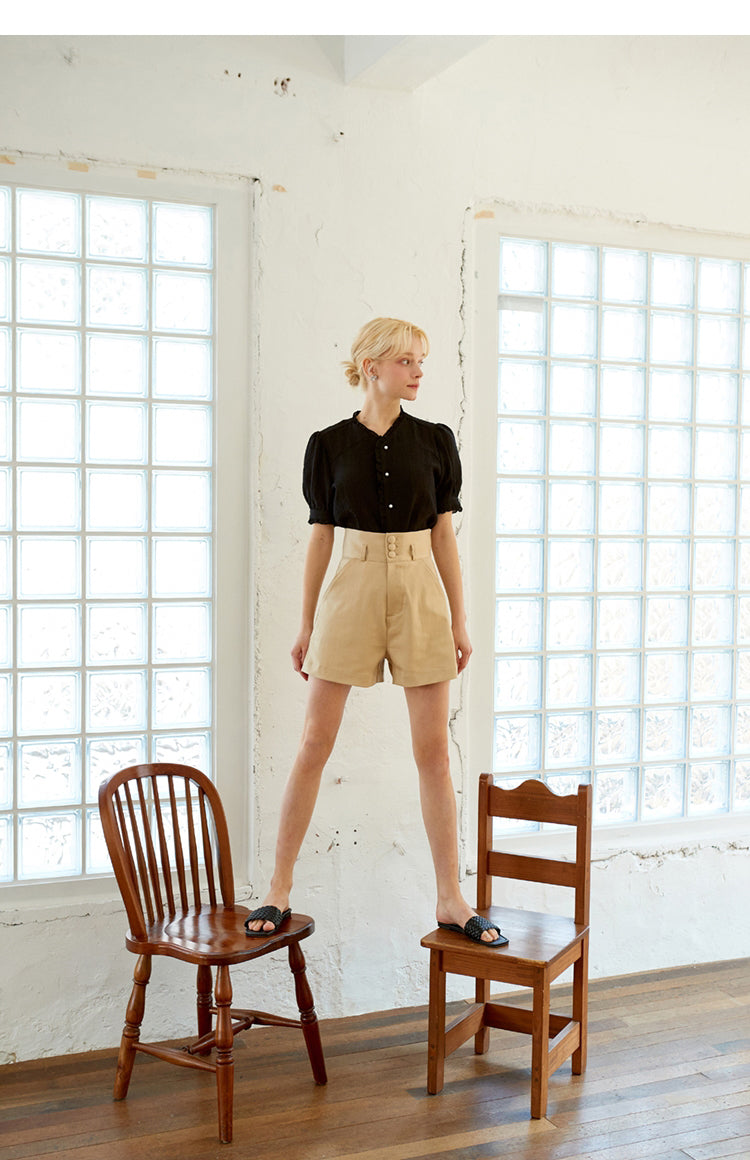 The Sarah Luton linen top is a modern take on feminine tailoring, featuring soft puff sleeves and a classic button-front silhouette. Crafted from breathable linen, it offers natural texture and comfort ideal for warm-weather styling. The subtle curved hem and delicate collar detail elevate its timeless appeal. Whether tucked into tailored trousers or paired with an A-line skirt, this piece adds charm and polish to any outfit. An essential addition for effortless chic.