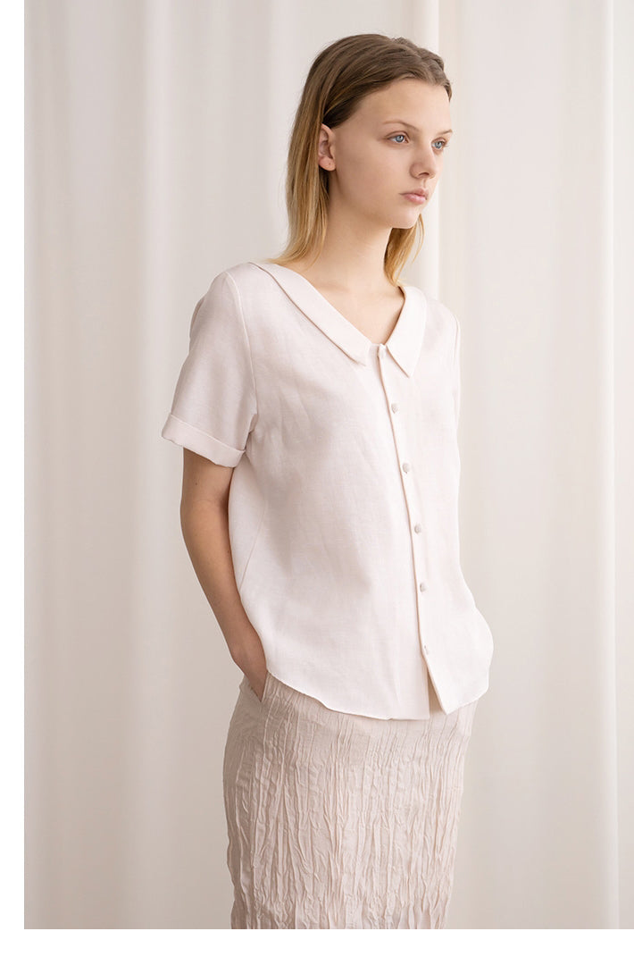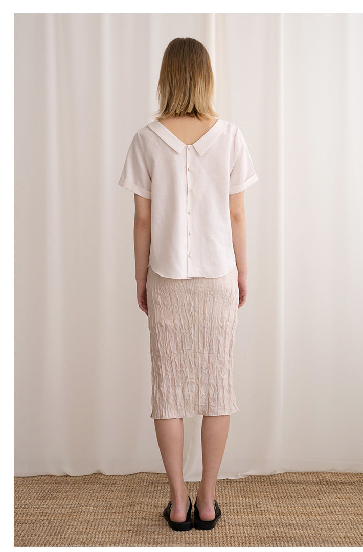 The Sarah Luton Reversible Linen Top is a refined blend of elegance and versatility, designed for the modern woman. Crafted from breathable, premium-quality linen, this top features a delicate round neckline on one side and a charming sailor collar with a full button-down closure on the other, allowing it to be worn both ways. The soft ivory hue and minimalist silhouette offer effortless sophistication, perfect for warm-weather styling or layered elegance. Ideal for those who appreciate timeless details and thoughtful craftsmanship, this top brings understated luxury to everyday wear.