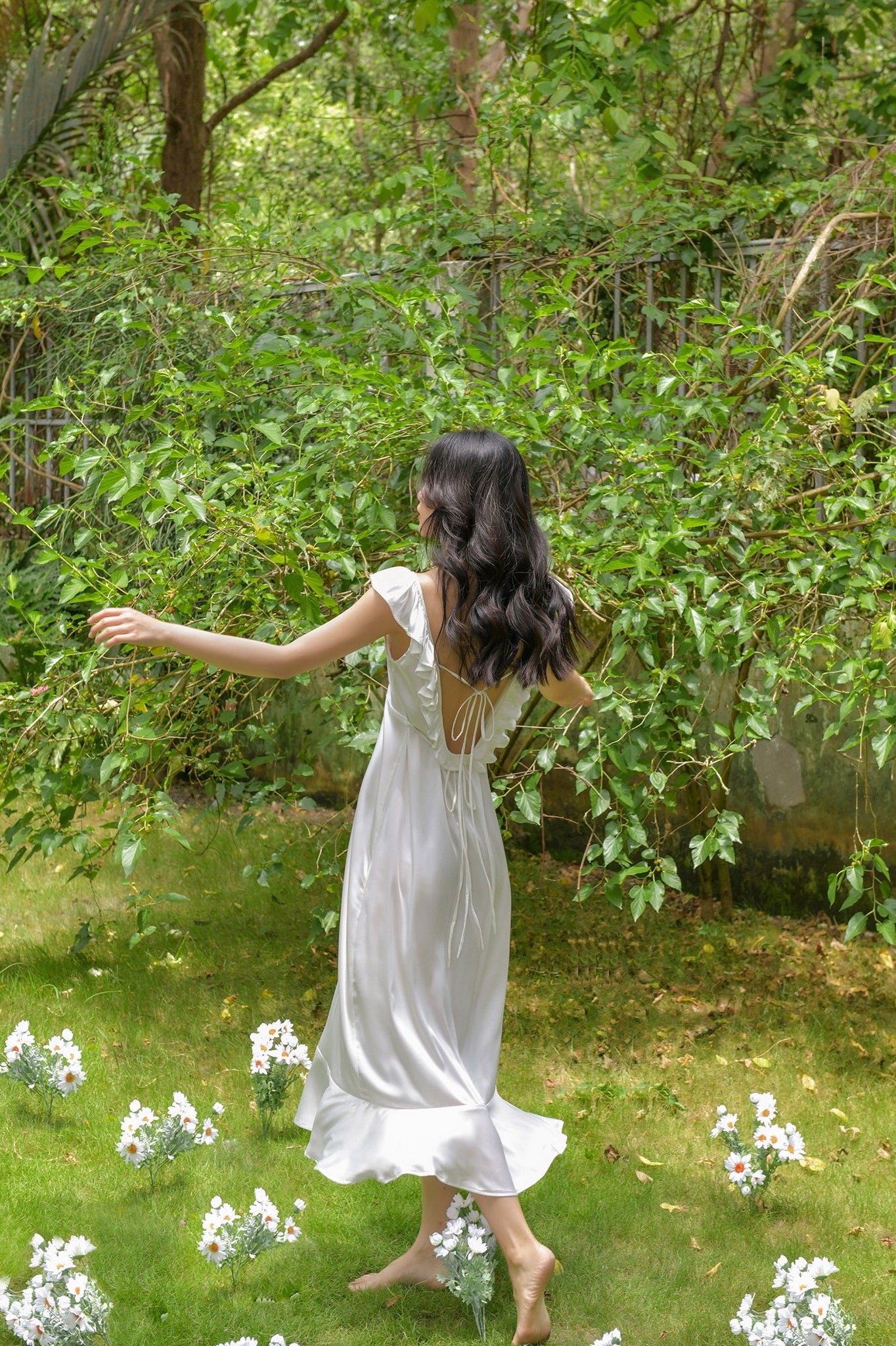 Indulge in luxury with the Rosemarie Open Back Silk Slip Dress. Crafted from premium silk, this dress features an alluring open back design and a delicate slip silhouette. Elevate your style with this elegant and sensual piece that will have you feeling like a work of art.