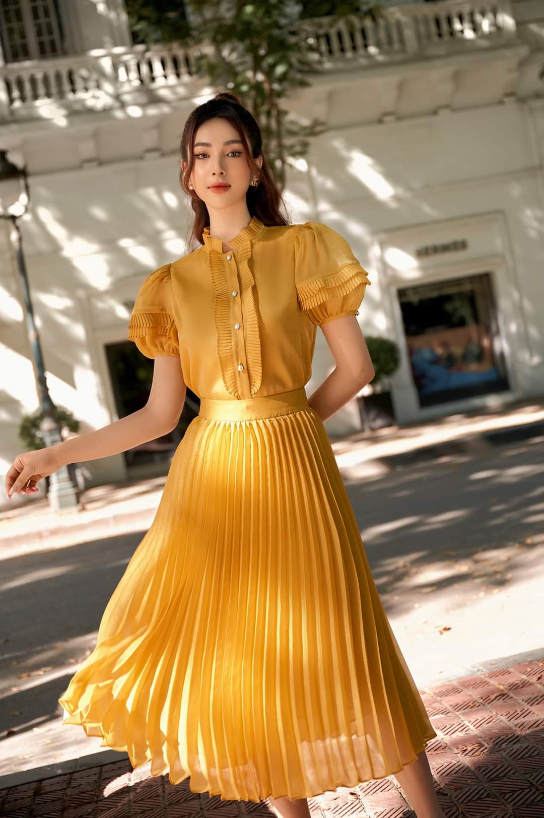 This exquisite silk blouse from Sarah Luton captures timeless elegance with a modern flair. Crafted from premium silk, it features intricate pleated ruffle sleeves and a refined high neckline. The front is adorned with lustrous pearl buttons, adding a delicate yet luxurious touch. Perfectly tailored to flatter the silhouette, this blouse seamlessly transitions from daytime sophistication to evening charm. A signature piece for refined wardrobes, the Sarah Luton blouse embodies grace and statement style in every detail.
